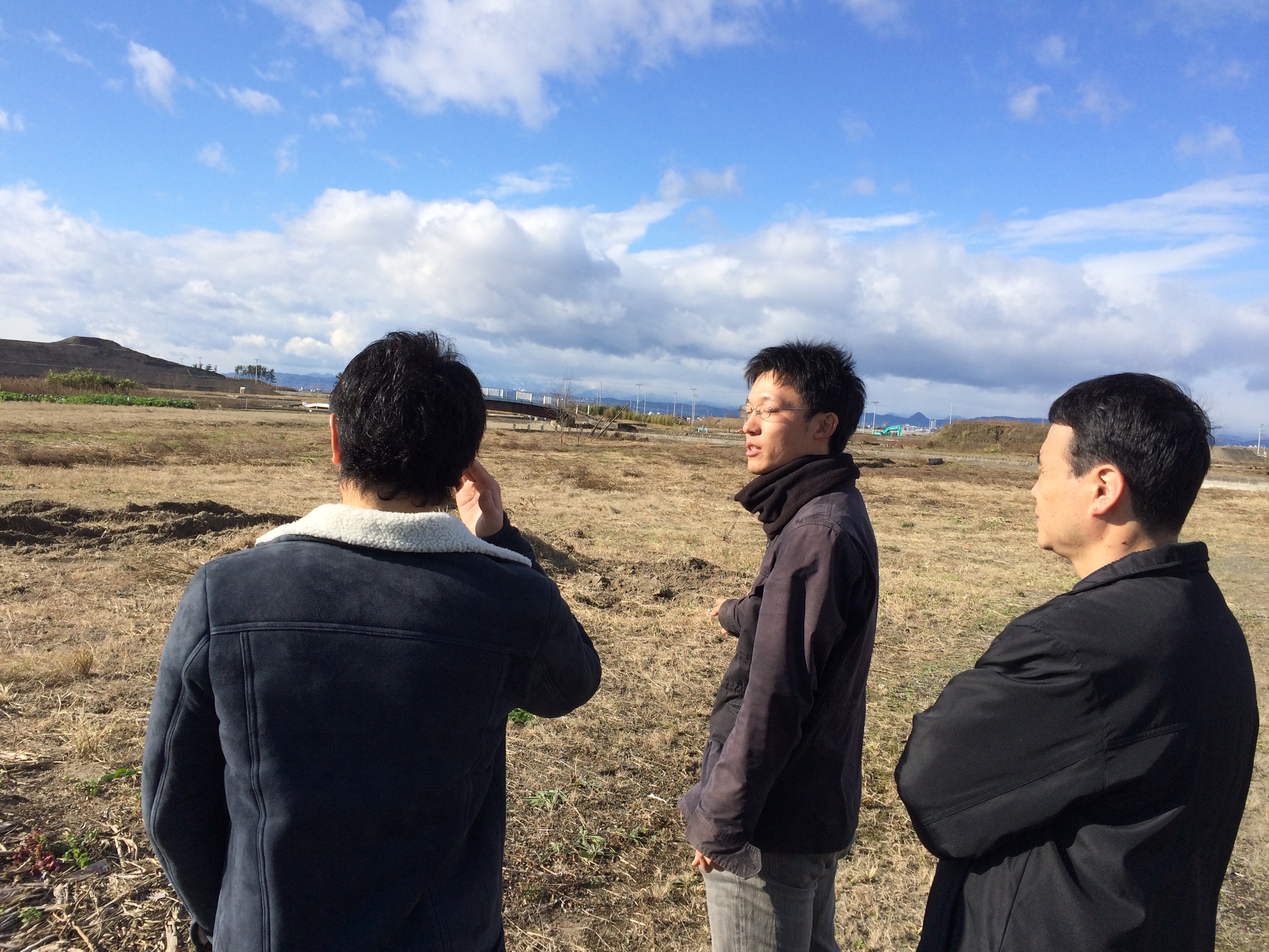写真は荒井駅前のわらアートの見学をしているところです。写真の左側の方は、長い間ReRootsを支援してくださっていて、よく物資を事務所に贈ってくださっている福井さんです。今回はるばる愛知からいらっしゃってくださいました!