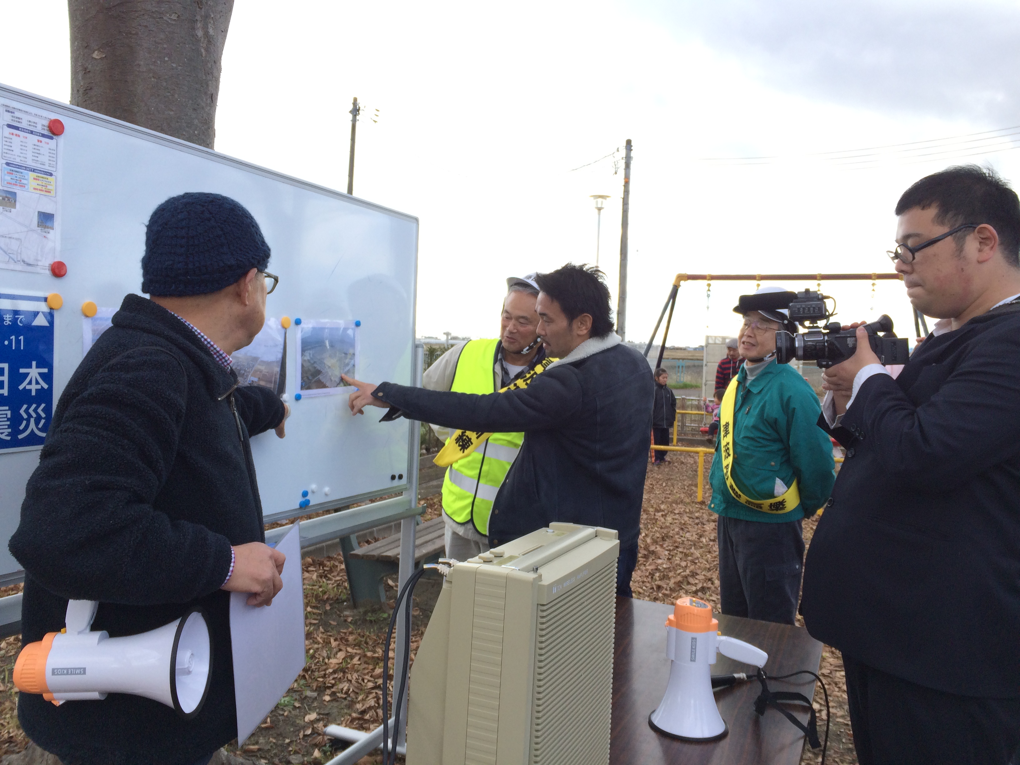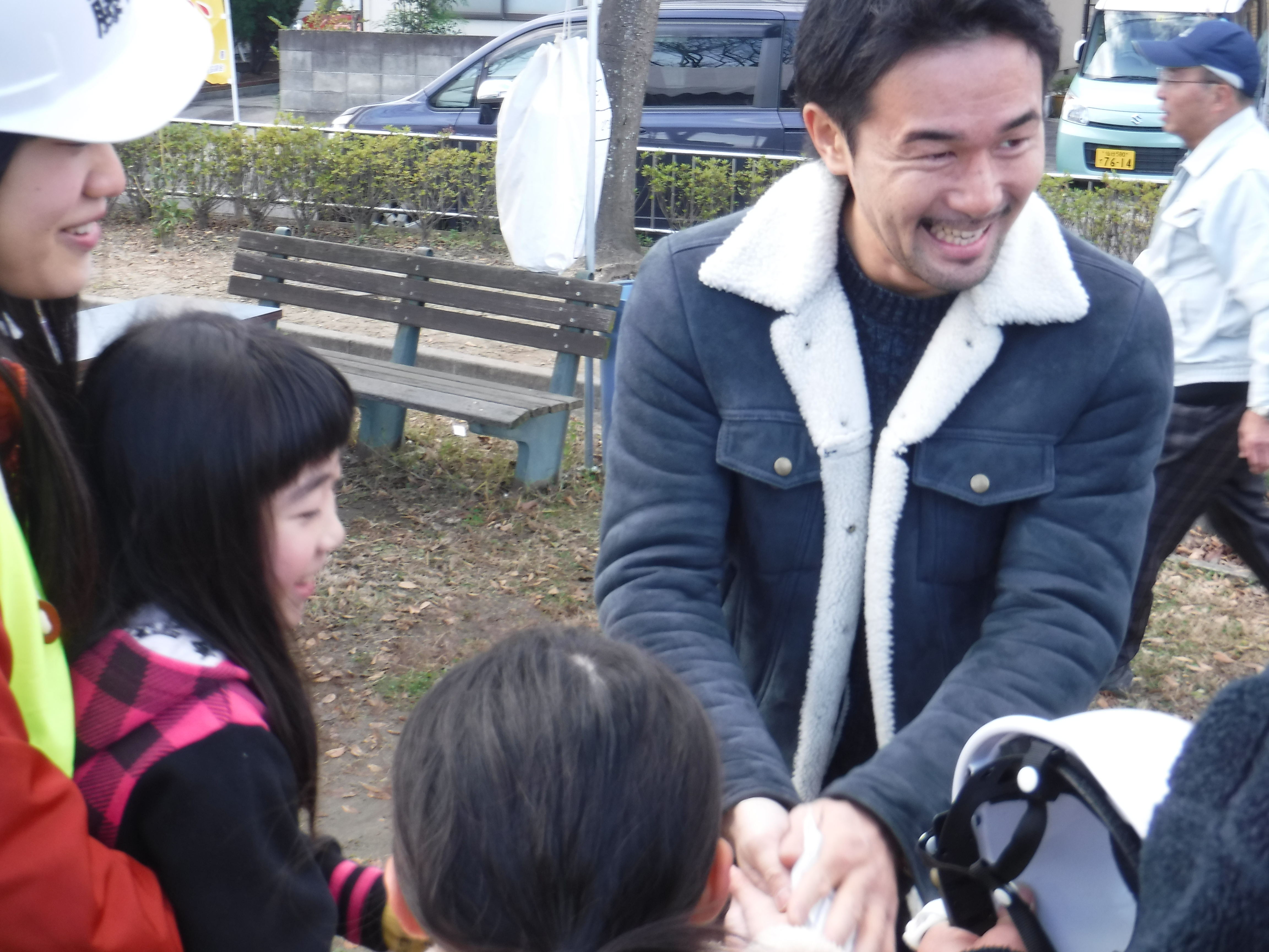 藤田は若林区七郷地区の集落の一つで、毎年ReRootsからも防災訓練のお手伝いで参加させていただいています。今回はそこにお邪魔して、地域の方たちを激励されました。地元の子どもたちも大はしゃぎの様子で、握手やサイン会もにぎわいました。