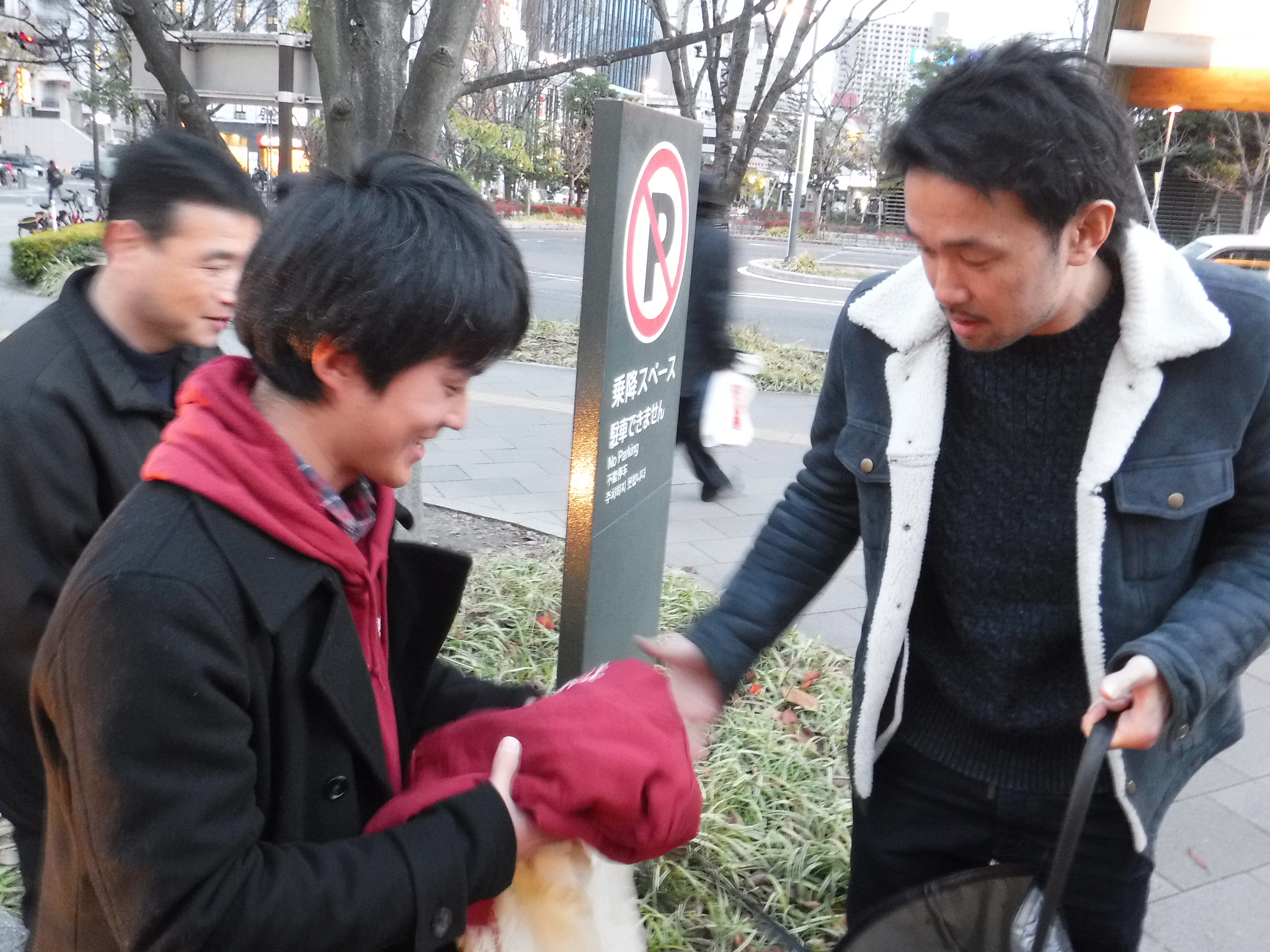 仙台駅の東口で最後はお別れしました。今日来ていただいたお礼に、僕たちReRootsからもささやかなものですが、福井さんと山中選手に今年の10月に新しく作成したリルーツオリジナルパーカーをプレゼントさせていただきました!