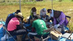 日が差している中での作業でしたが、テントを立てて日陰を作ったので