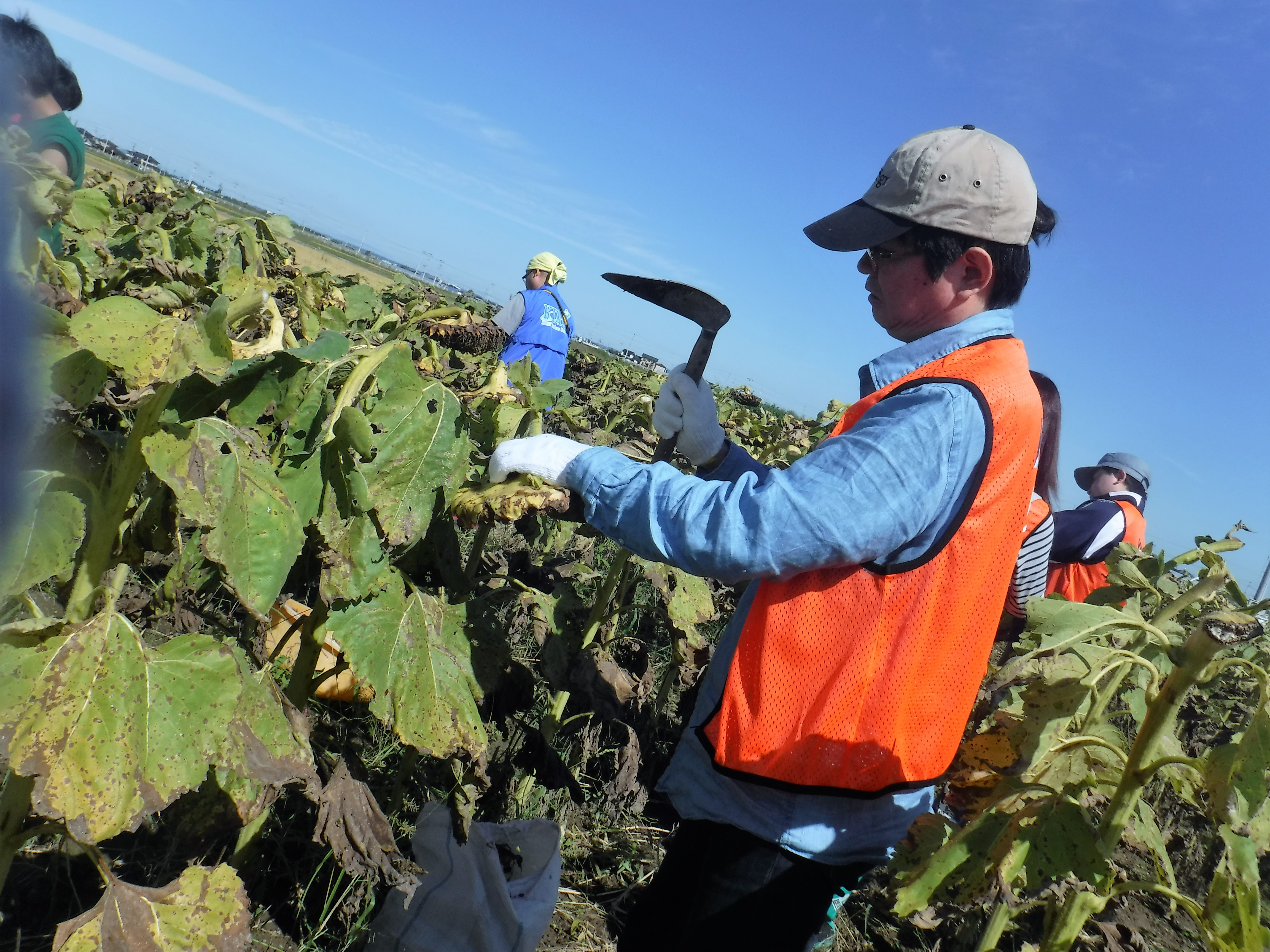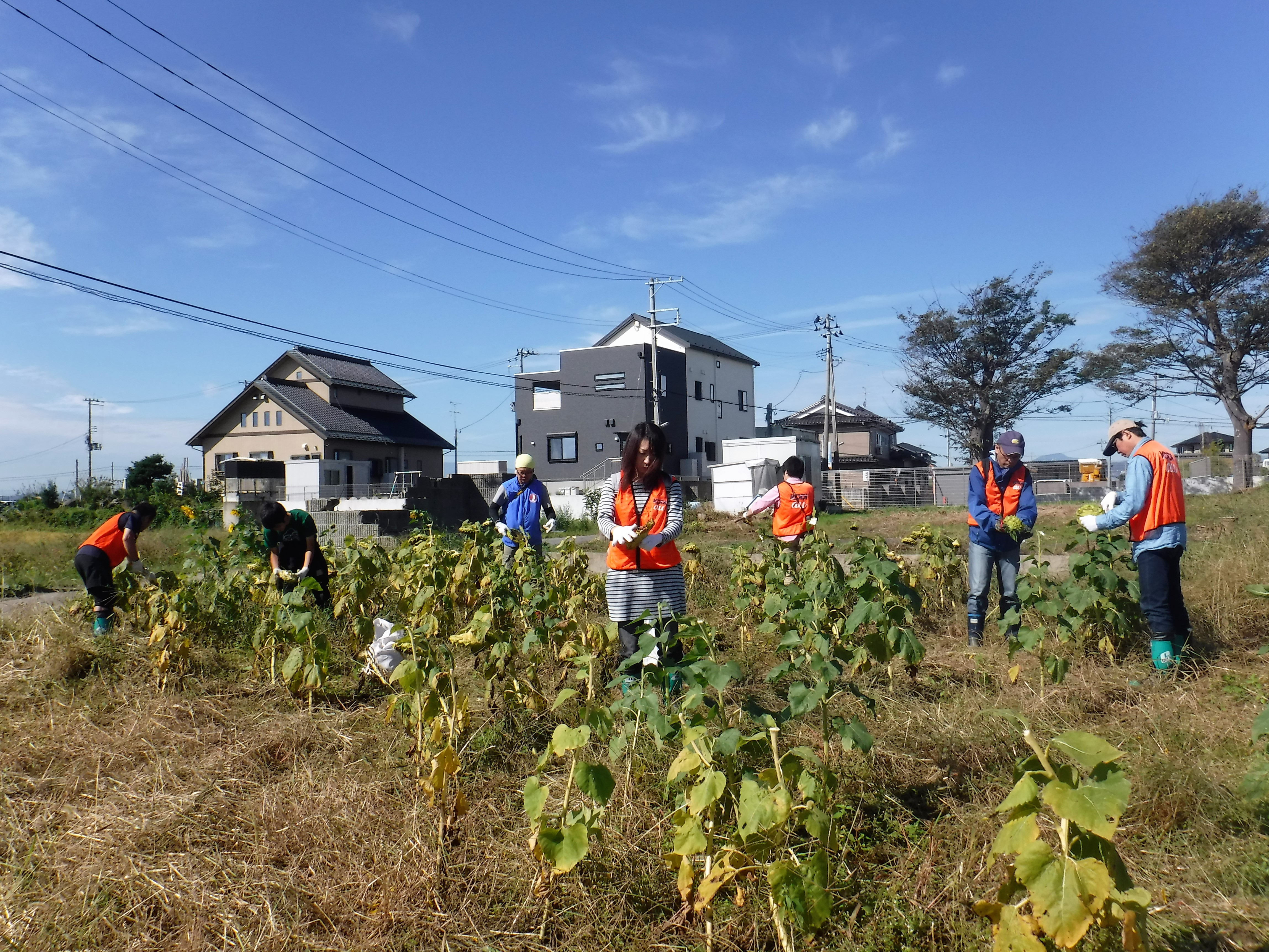 企画内容は、ひまわりの種収穫、昼食(若林区の美味しい野菜を使います!)、ひまわりアート、を予定しています。