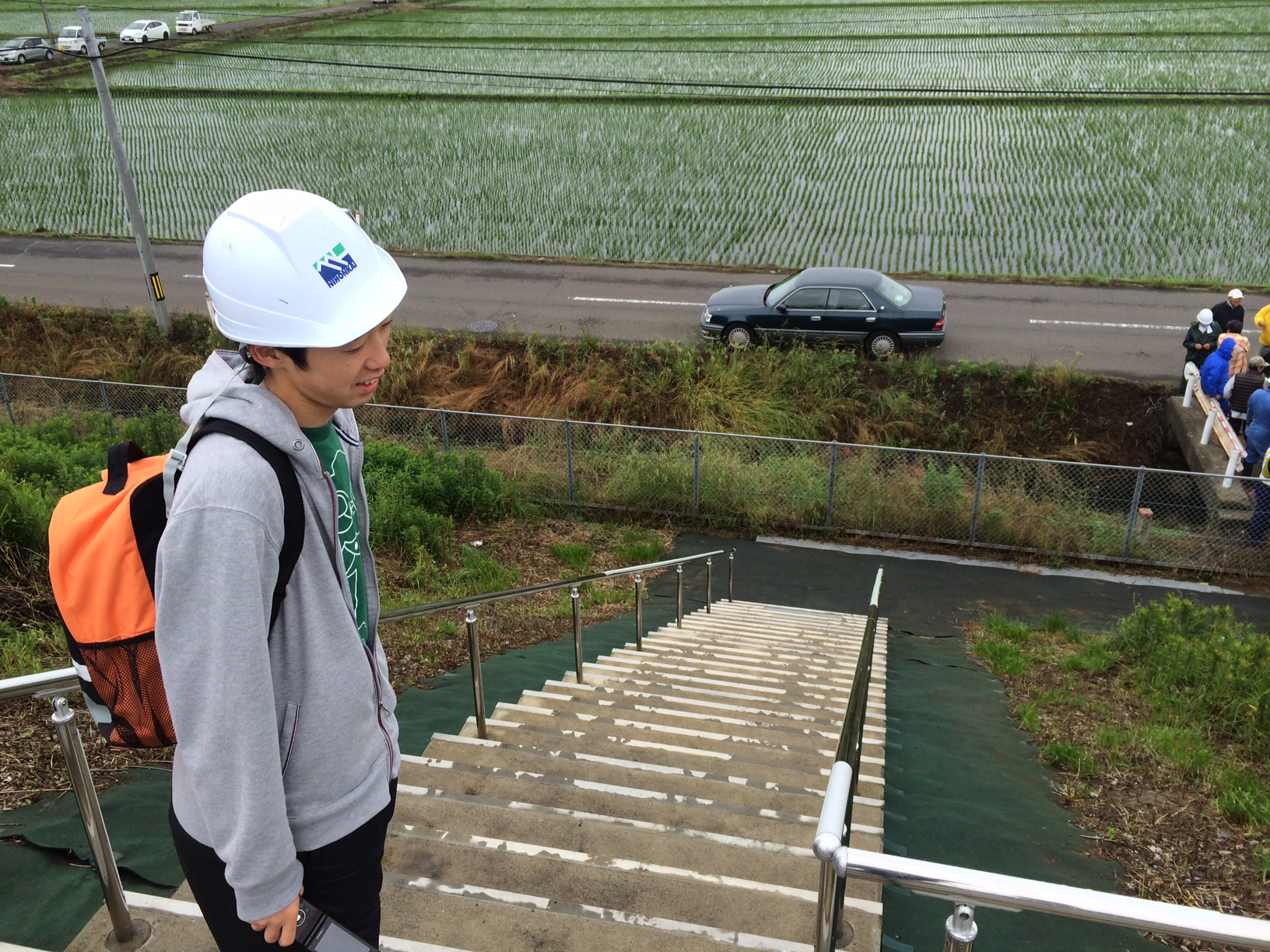 ボランティアハウスから一番近い避難場所は東部道路の避難階段。20分ほどで到着です。