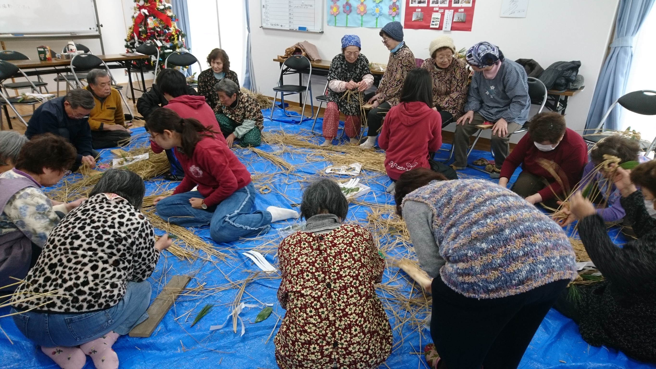 当日は小さい頃にわらないをやったことのある方が多く、皆さんすいすいとわらをなっておられました。初めての方も交えて互いに教え合いながら会話が弾み、終始和気あいあいとした雰囲気の中企画が進みました。