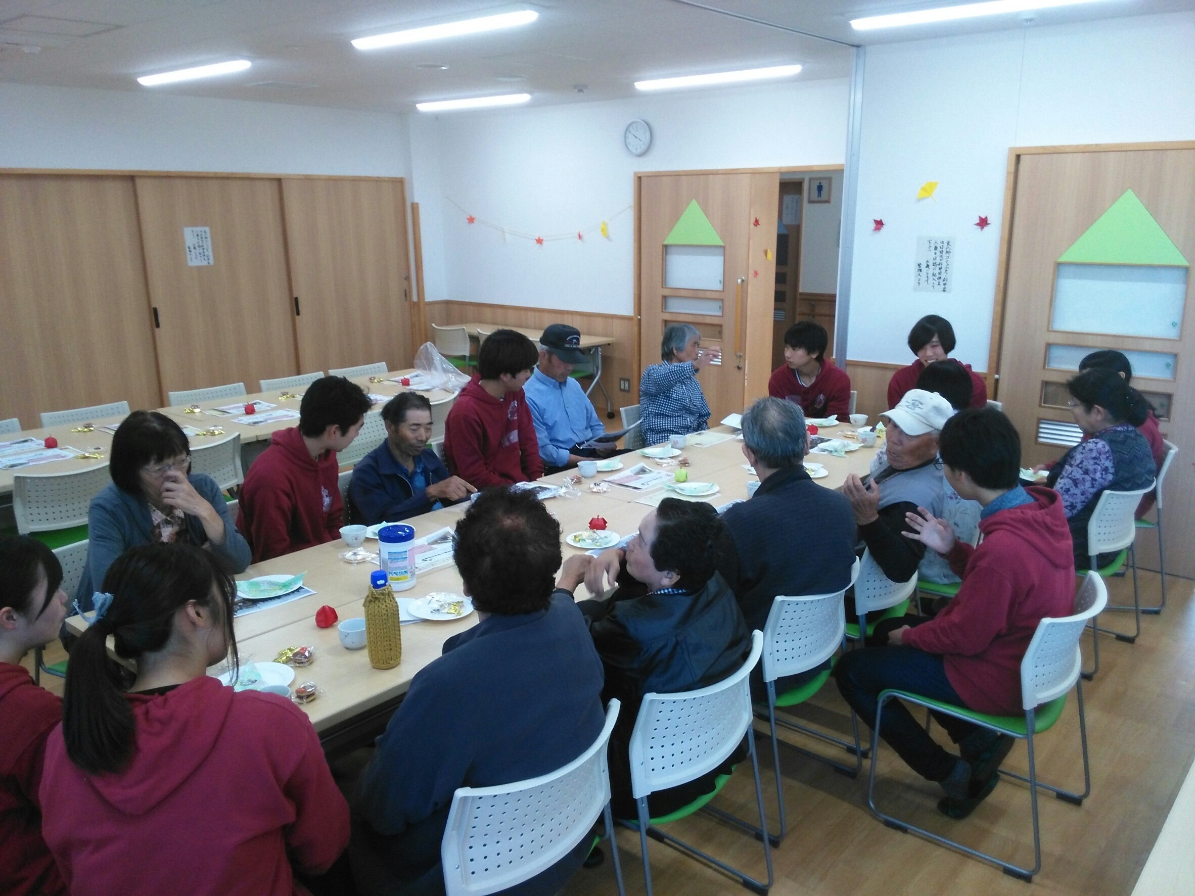 映画上映会は、その名の通り映画を上映することにより、仙台市若林区の東六郷地区で地域住民さんが集まれる場所を作ろうということで始まった企画です。今回は5回目で、高倉健さん主演の「幸福の黄色いハンカチ」を上映しました。参加してくださった地域の住民さんは15名ほどで、今までの映画上映会に参加してのリピーターだという方ばかりでした。映画が楽しみ、まわりの参加者さんと交流するのが好きなど、参加する理由は様々でしたが、人それぞれ思い思いの時間を過ごしてもらえたようです。