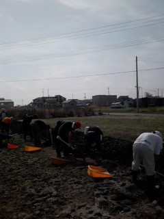 水はけがあまりよくないせいかぬかるんでいる部分が多く、ぬかるんだ土の重さに苦労しながら土を掘り起こしていきました