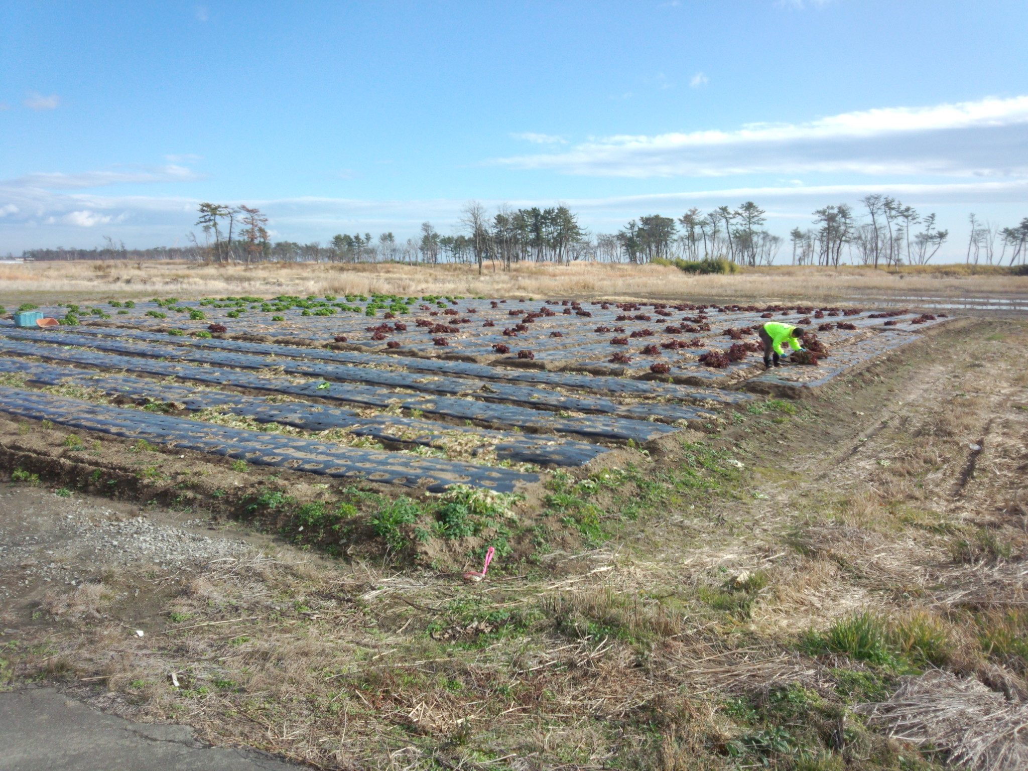 というように、みんなでガレキを取って無事レタスが育った畑です。