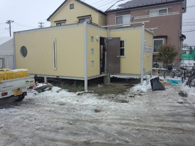 昨日ボランティアのみなさんが雪かきをしてくださったおかげで、速やかに設置作業に移ることができました!…感謝ですm(__)m