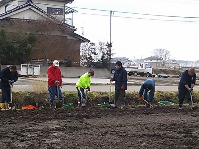 土起こし等の作業を行う畑は津波によって運ばれて来た