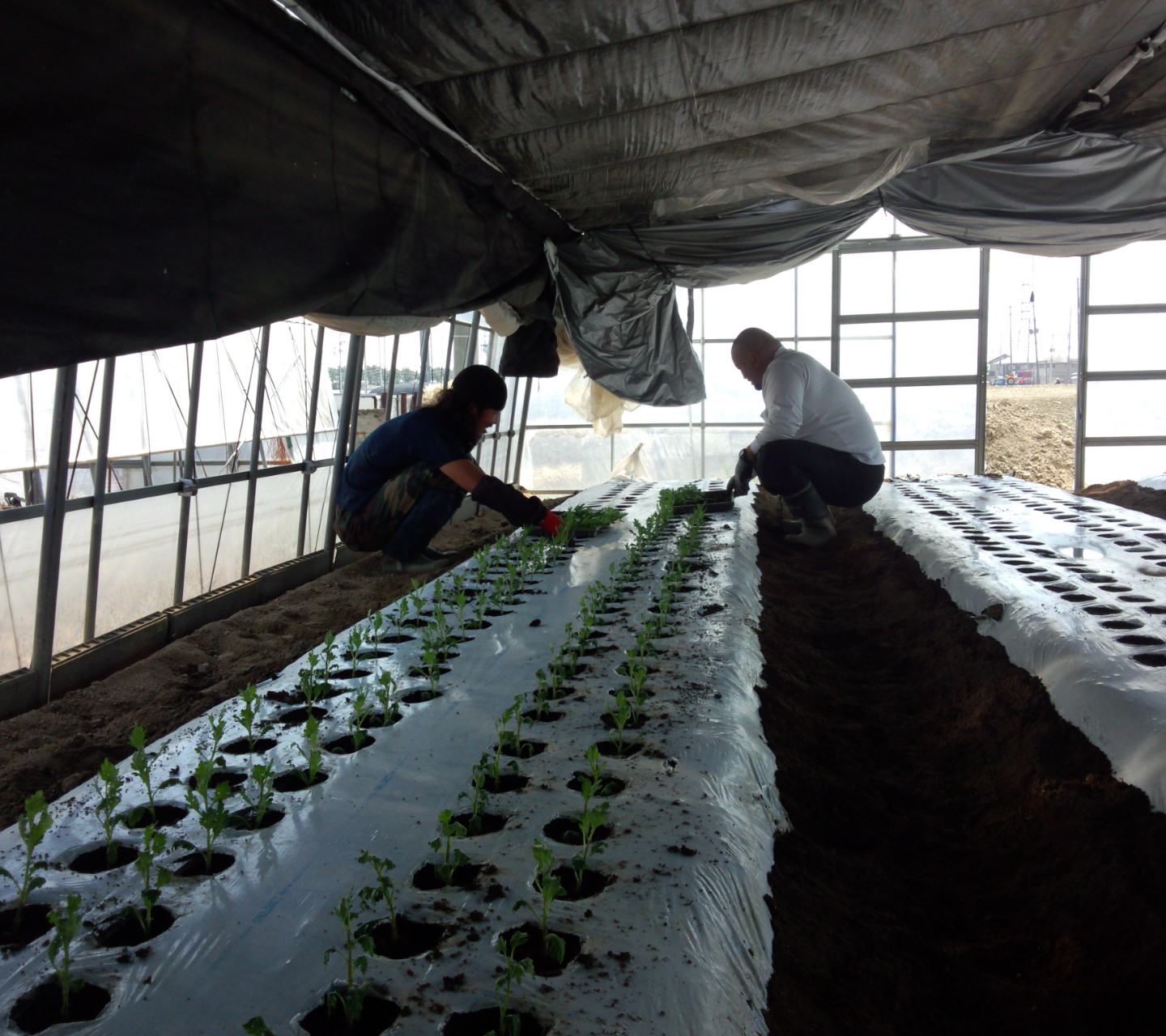 ビニールハウスには遮光のカーテンがしてあるので、暗いです。