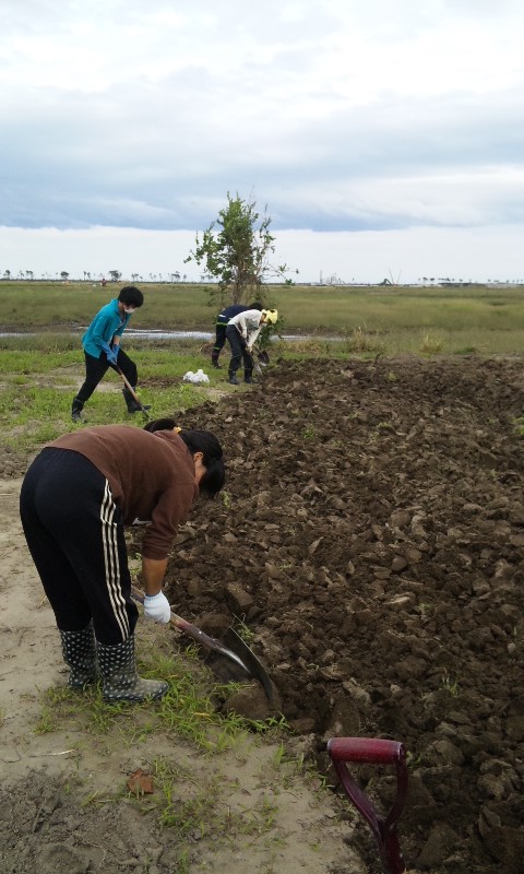 午後から参加の方々のパワーにより、大きな畑のすべての土の掘り起しが終了!!