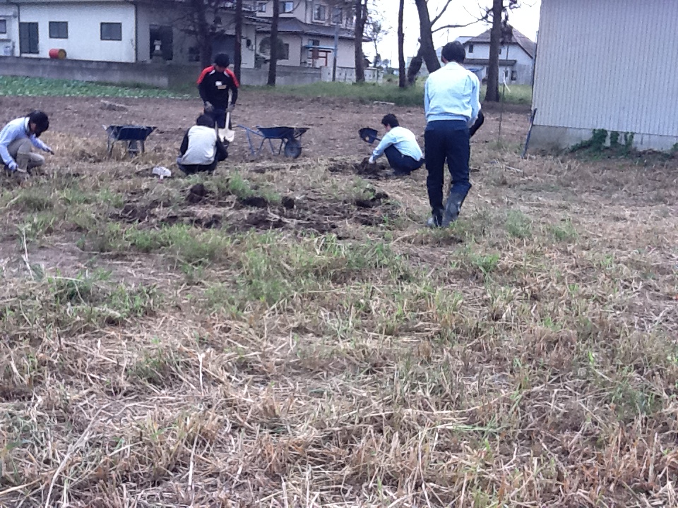 みんなで力をあわせて畑の土興しは完了