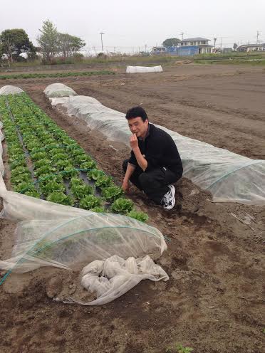 リルーツファームです。リルーツのメンバーが育てている野菜。レタスを味見している福井さん。