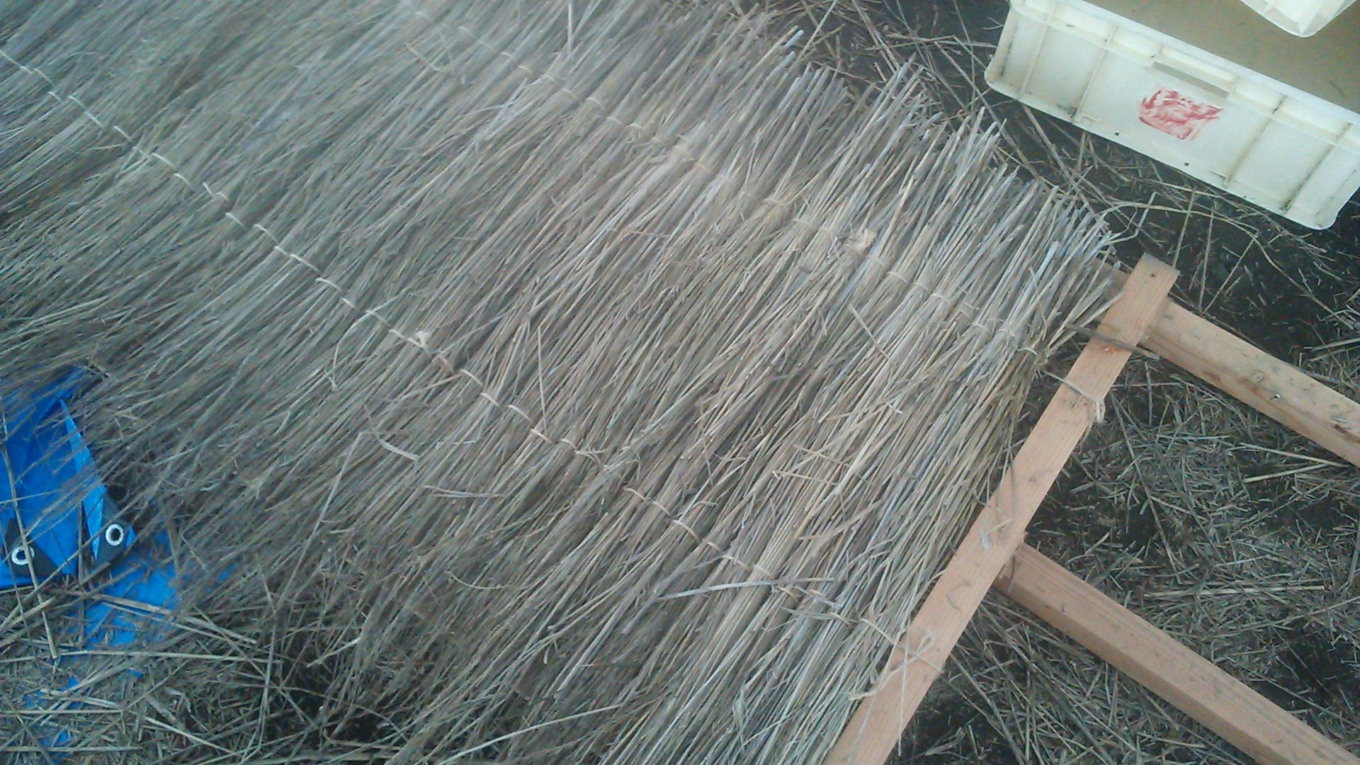 その前段階でわらを束ねて、本体を包むわらのシートを作ってます。