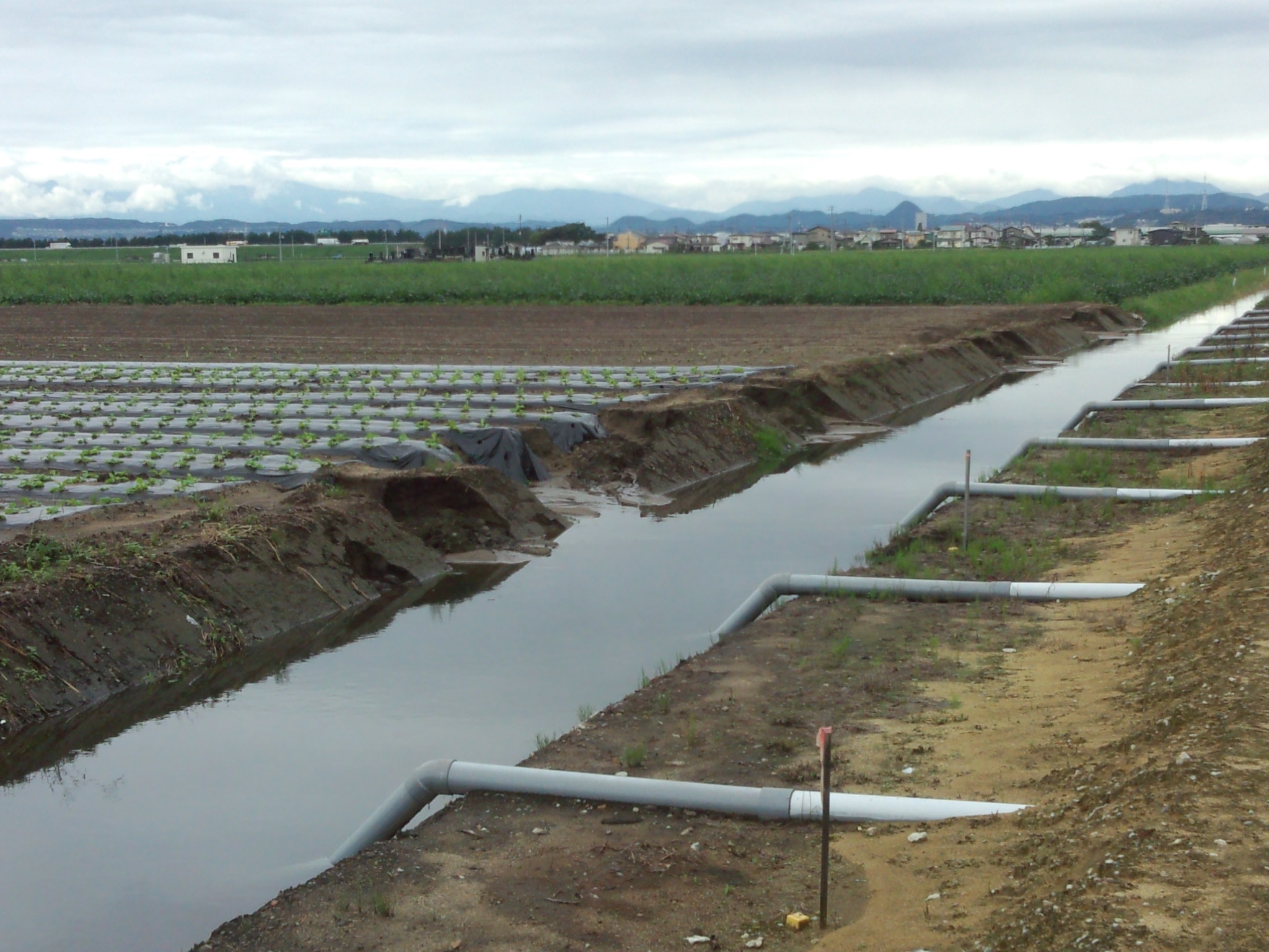 荒浜付近を流れている七郷堀、三本塚から井土の方に流れている二郷堀も、六郷堀も、どこの水路も川も水面が高く、堤防いっぱいまで水が溜まっていました。