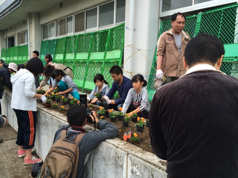 今回のイベントは、その体育館への寄せ書きと校舎前の花壇の花植えをする、というもので、ReRootsは花壇の花植えの運営を担当させていただきました。