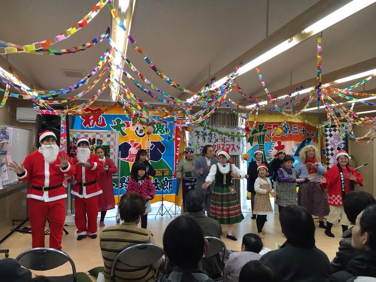 歌や踊り、音楽や楽しいトークで場を盛り上げ、ダンスではサンタも一緒に踊りました♪