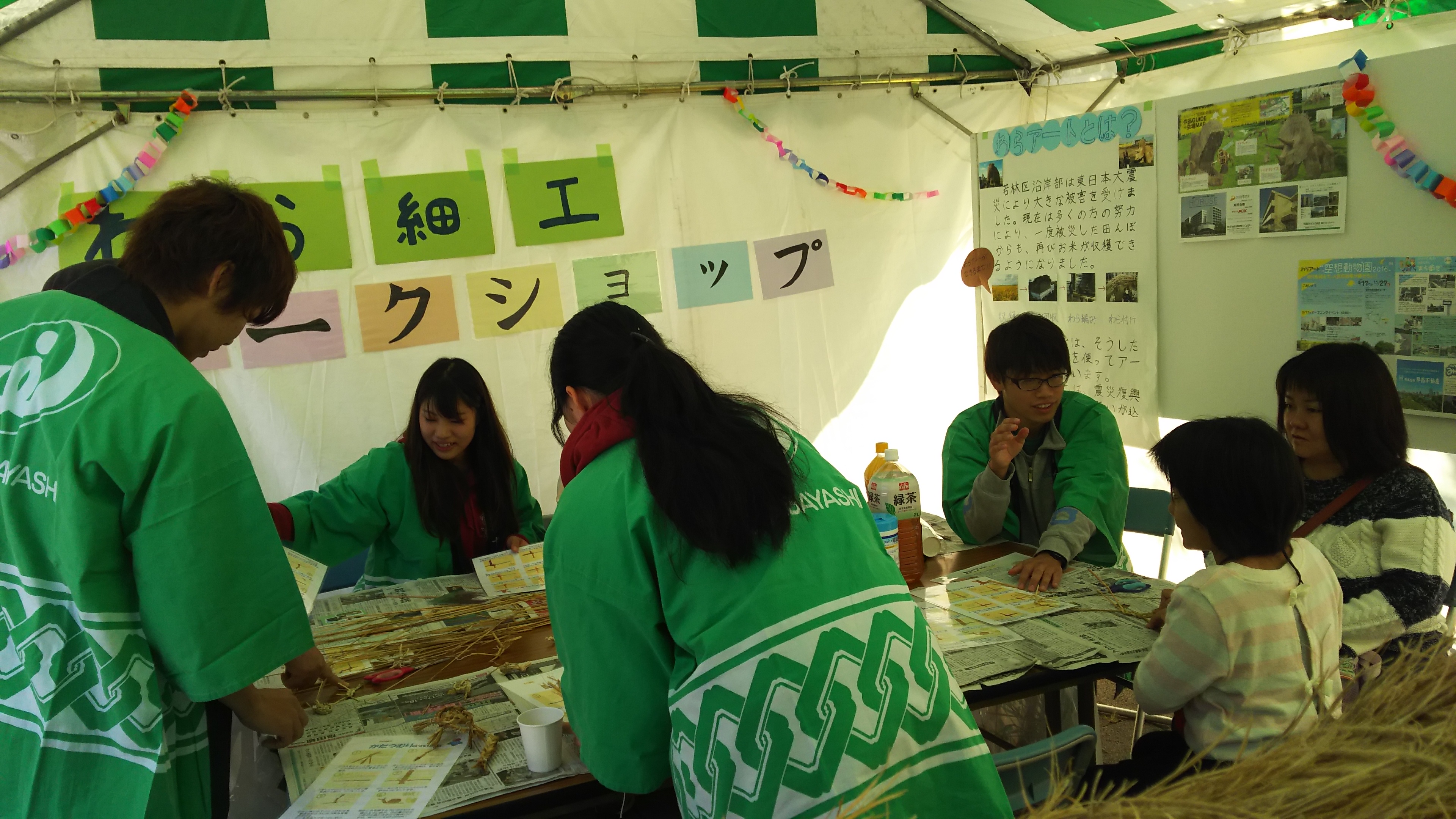 10月16日に若林区役所で若林区民ふるさとまつりが開催されました。そこでリルーツもわらアートの実行委員会として出店し、わら細工体験のワークショップを行わせていただきました。今回はその様子をお伝えします!おまつりはとても活気があり、私たちも多くの方に元気をもらいました!