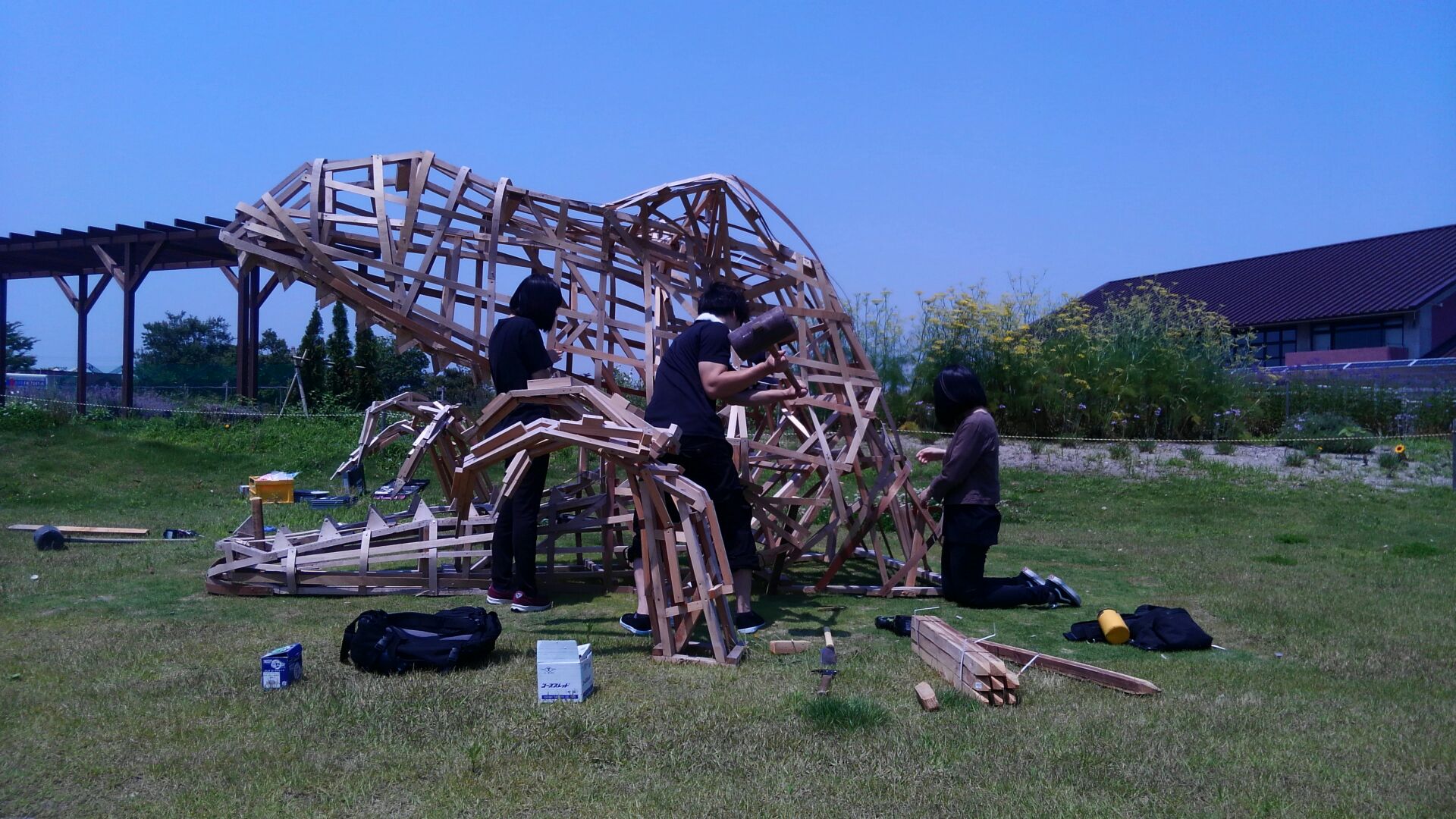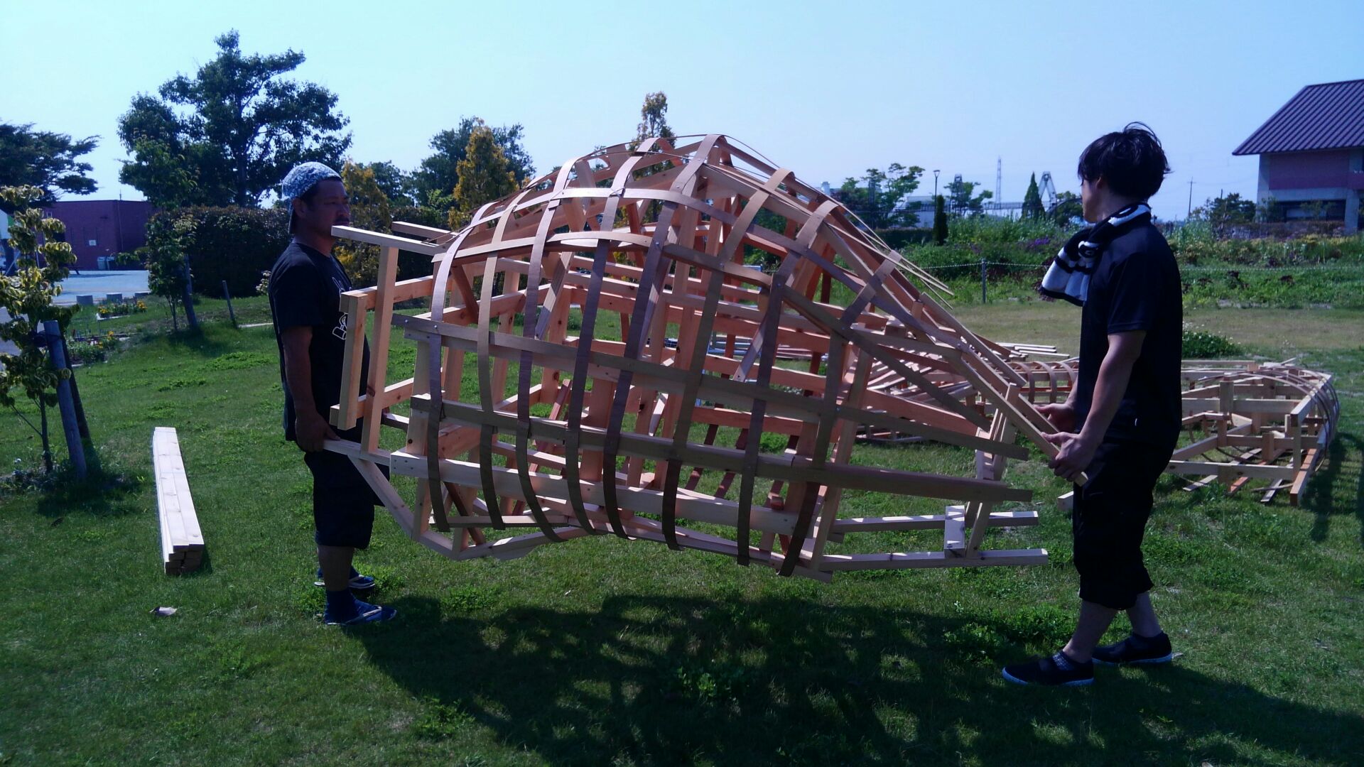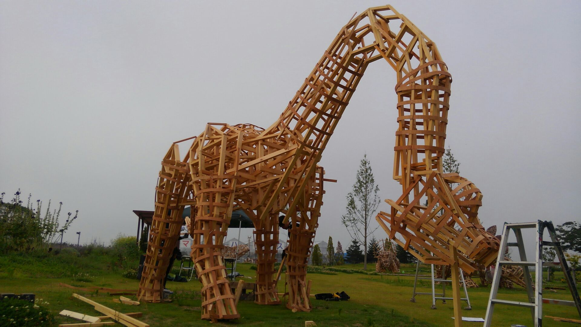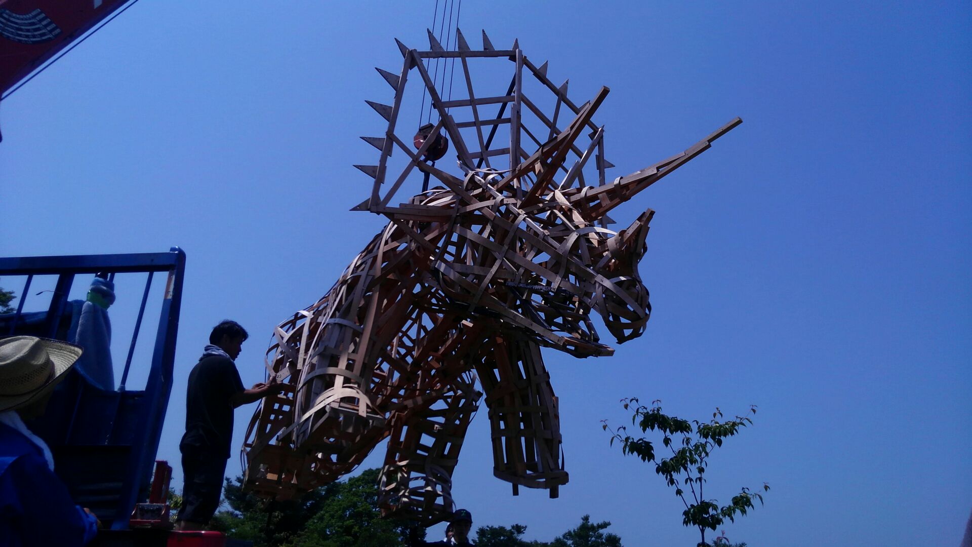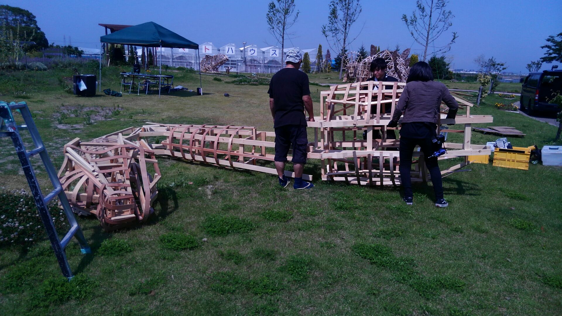 今年のわらアートの骨組が、