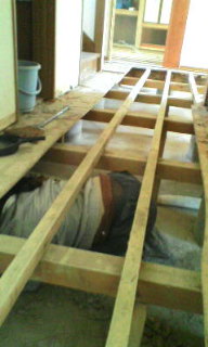 こんな感じで、床下の奥は、もぐりこんでの泥だしでした。