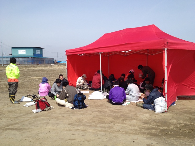 ブルーシートを現場に持って行き忘れたため、やむを得ず一人ひとり土のう袋をしいて座ったのですが、これが個人的にはかなり気に入ったので写真を撮りました。