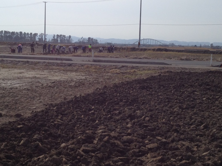 この畑にはガレキ拾いが終わったらまもなくレタスなどを植えるそうです。