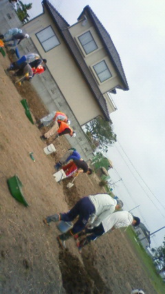20人弱での活動、前半はガレキも少なくすいすい土おこしが進みました!
