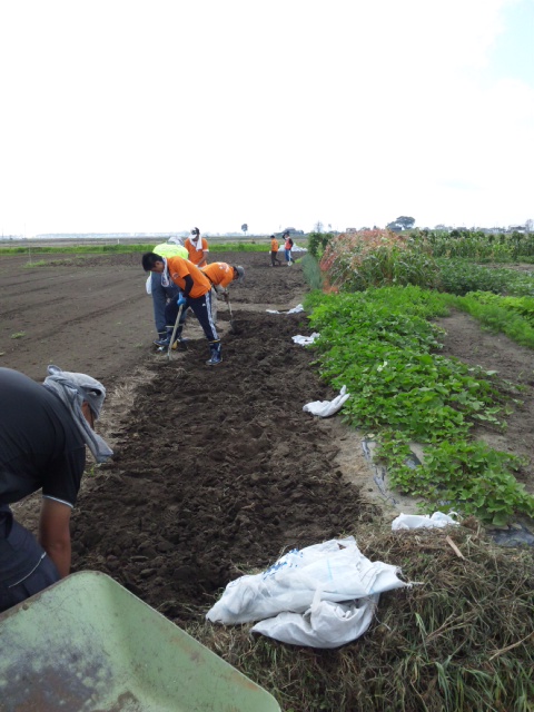今日は一般ボランティアの方々と、近くにある二つの現場で土おこしと雑草抜きをしました。