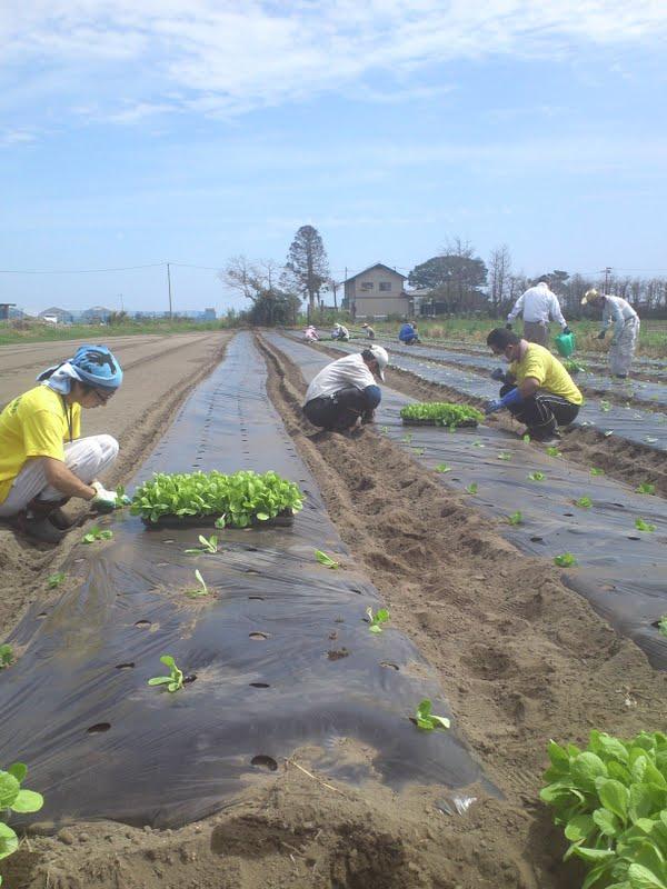 今日の活動は三本塚という地域での、古いマルチという畑にかぶせられた黒ビニルをとる作業と、冬野菜の白菜の苗植えです。