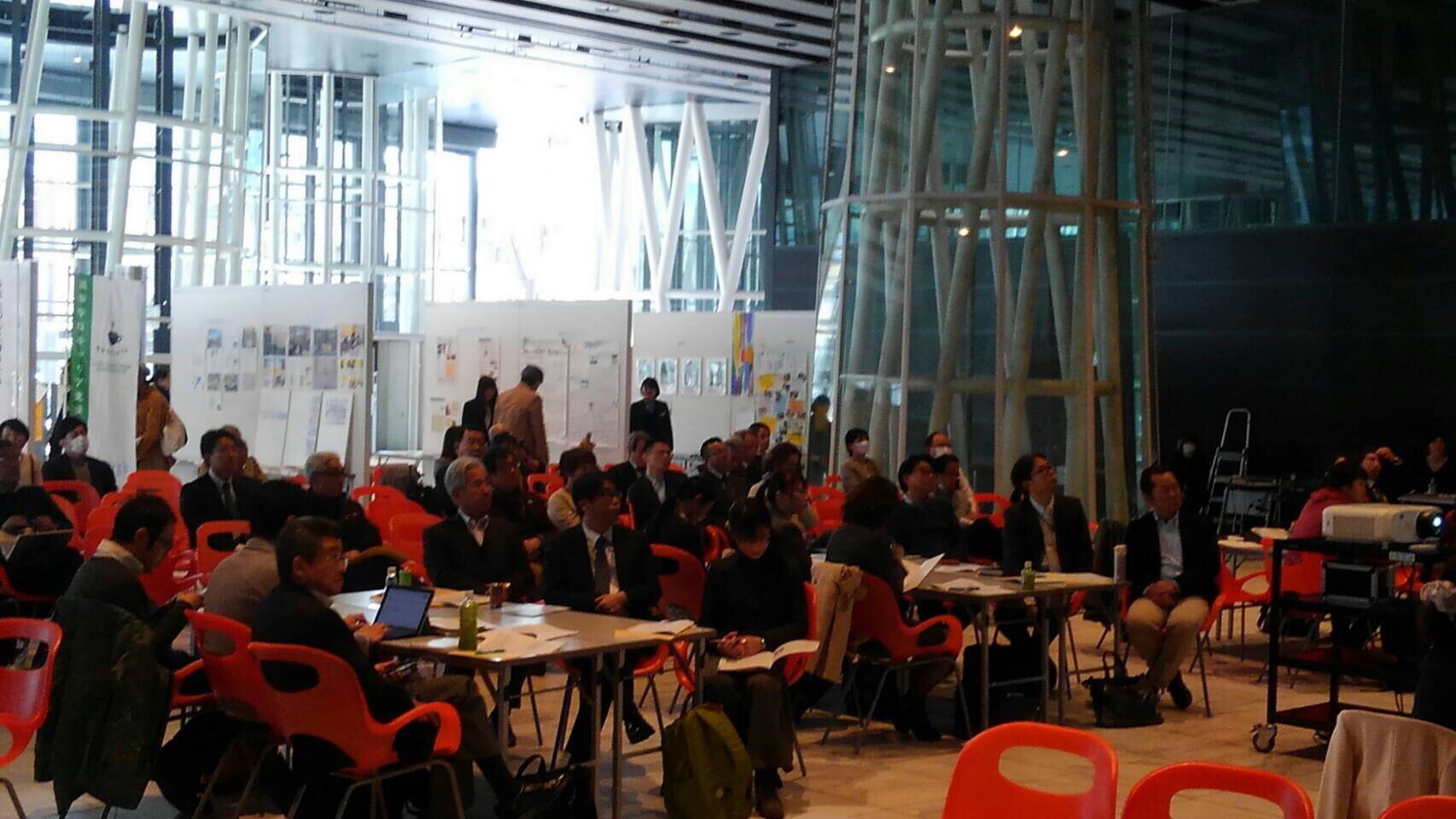 この報告会&交流会はせんだいメディアテークで行われ、絆力助成金の助成を受けた団体の人以外でも報告会や展示ブースを観覧できるようになっていました。