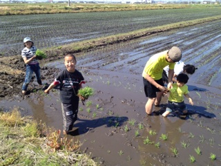 この子たちの小学校では5年生になると手植えの体験を行うそう。