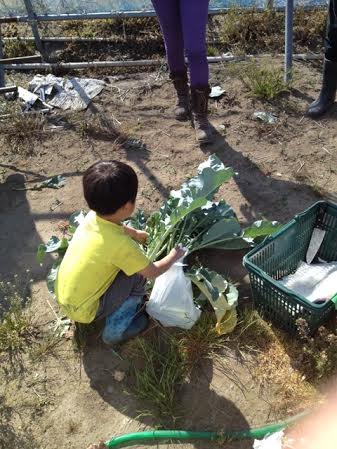 田んぼでの作業のあとは、畑で野菜の収穫体験をしました!