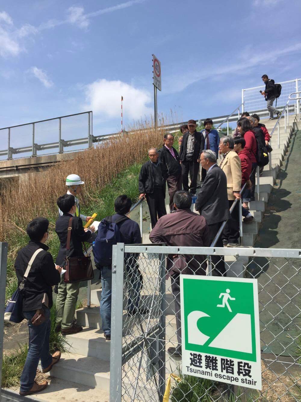 ボランティアハウスから一番近い避難場所は東部道路の避難階段。20分ほどで到着です。