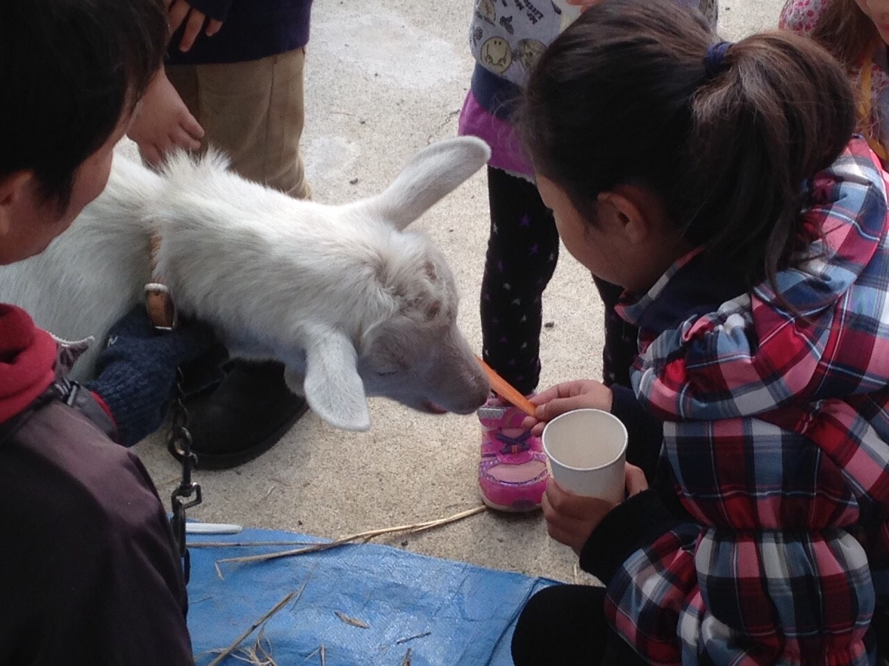 エサをあげたりさわったりした子供たちからは、「大根食べないね」「あったかい」「かわいい~」などゆずとのふれあいを楽しんでいました。