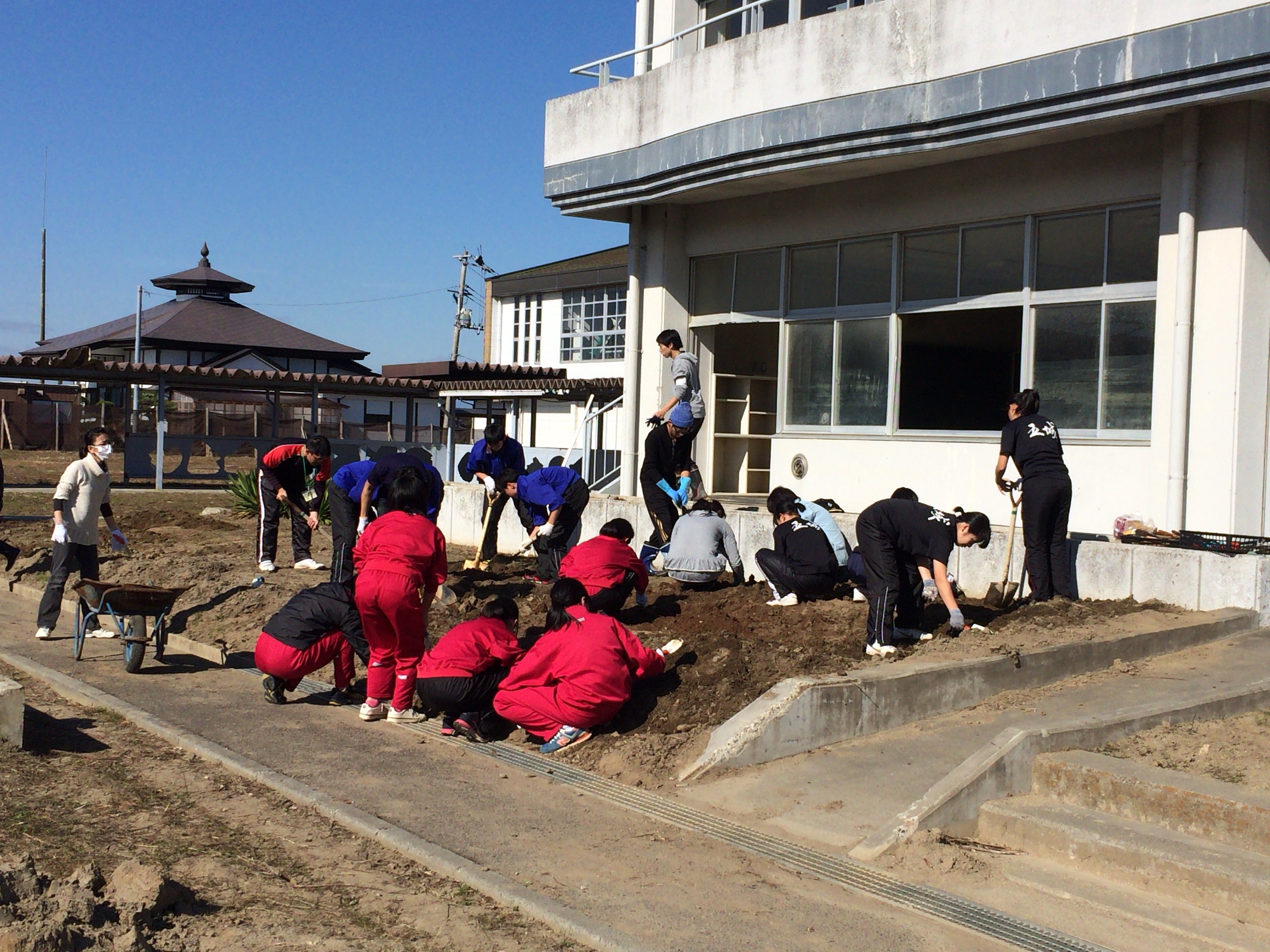 また、前回の美化活動で草を刈ったままになっていた砂地は今回の作業でとても見栄えが良くなりました。土の中には多くのガレキが含まれていて、震災の傷跡はまだ強く残っているのだと実感する機会ともなりました。