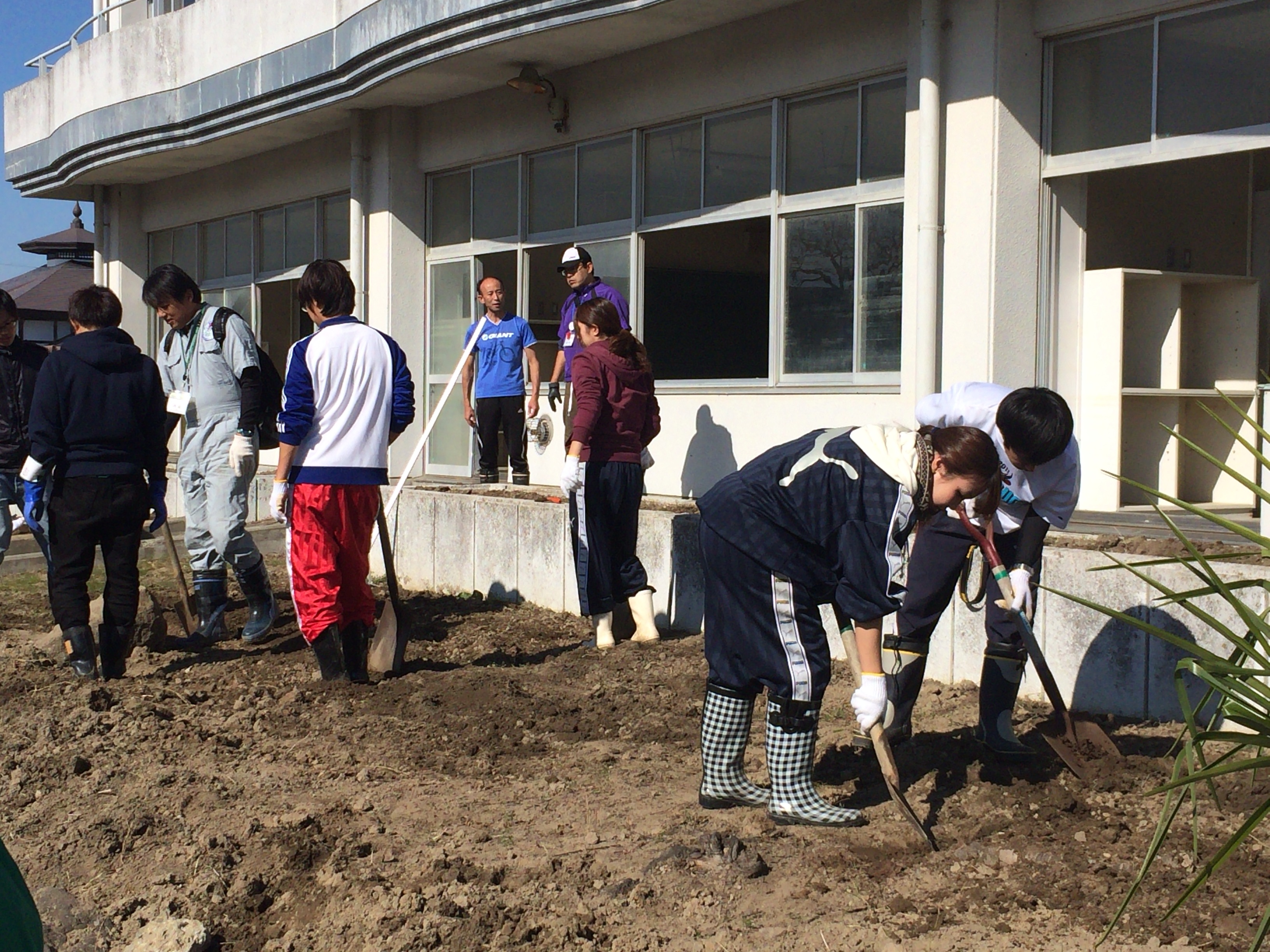 震災後、管理されずに荒れ果ててしまっていた学校をきれいにしようと