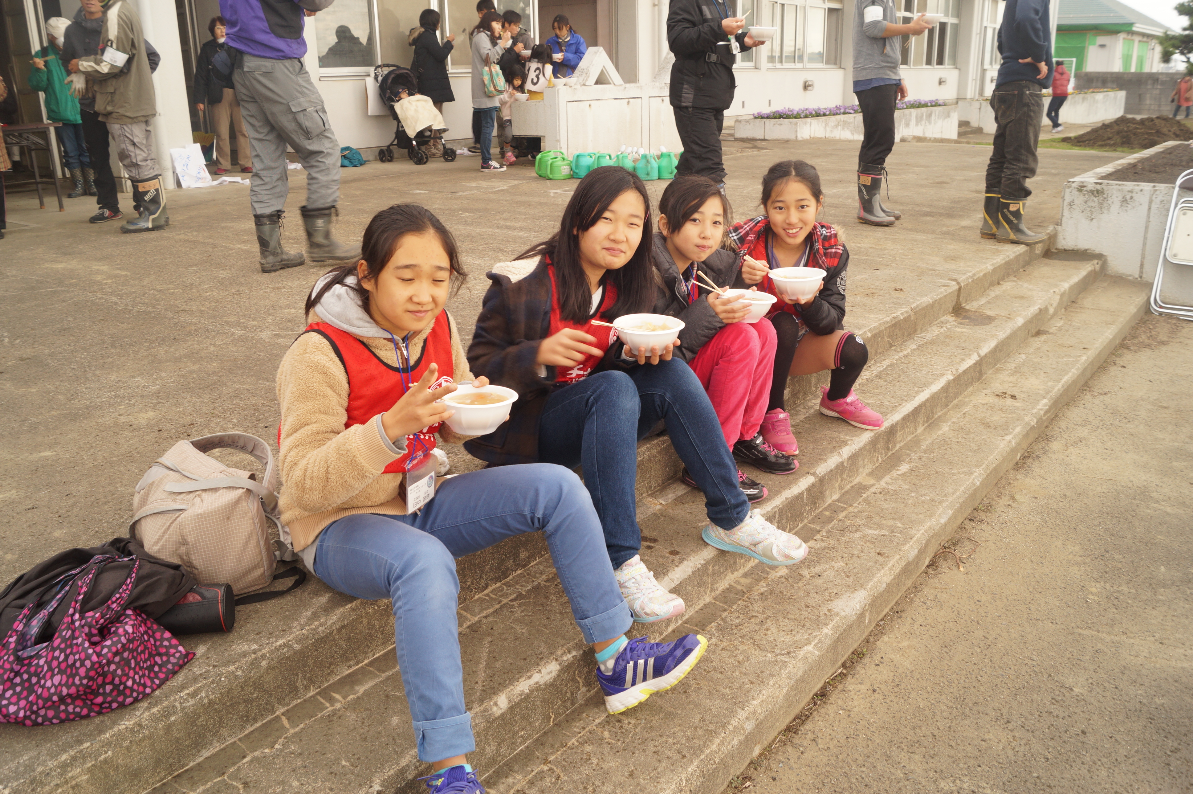 お昼ご飯は六郷地区の野菜を使った芋煮!