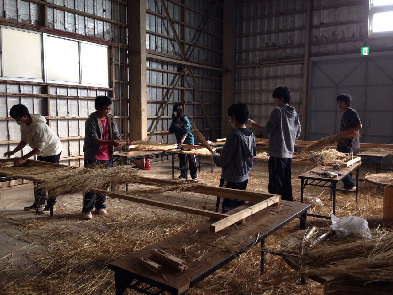 【11月3日藁編み】稲わらで動物などのオブジェを作るわらアート製作、わら編み作業も終盤戦にさしかかりましたそんな中、わら編み場所としてお借りしているハトの家ではついにマンモスの足が登場!足だけでも迫力がありますね!これは足1...