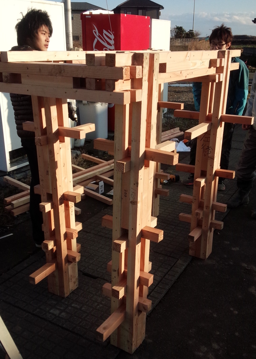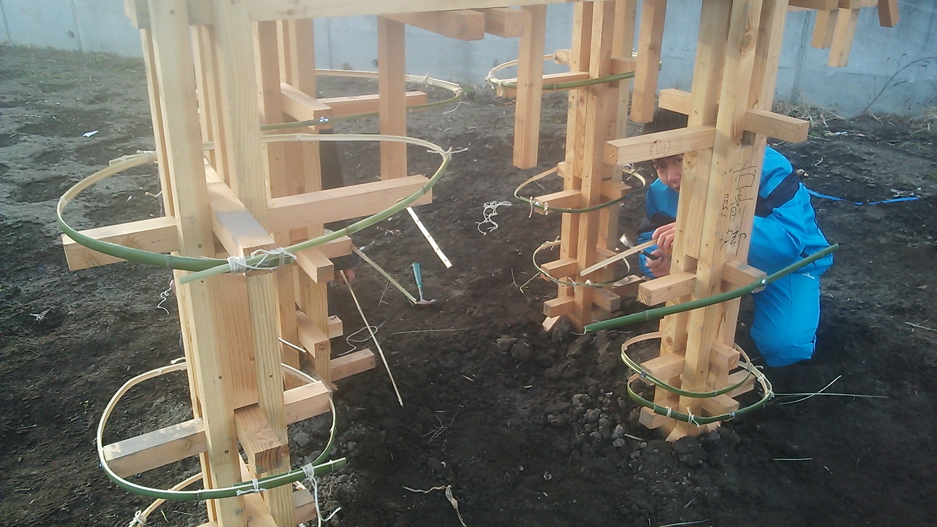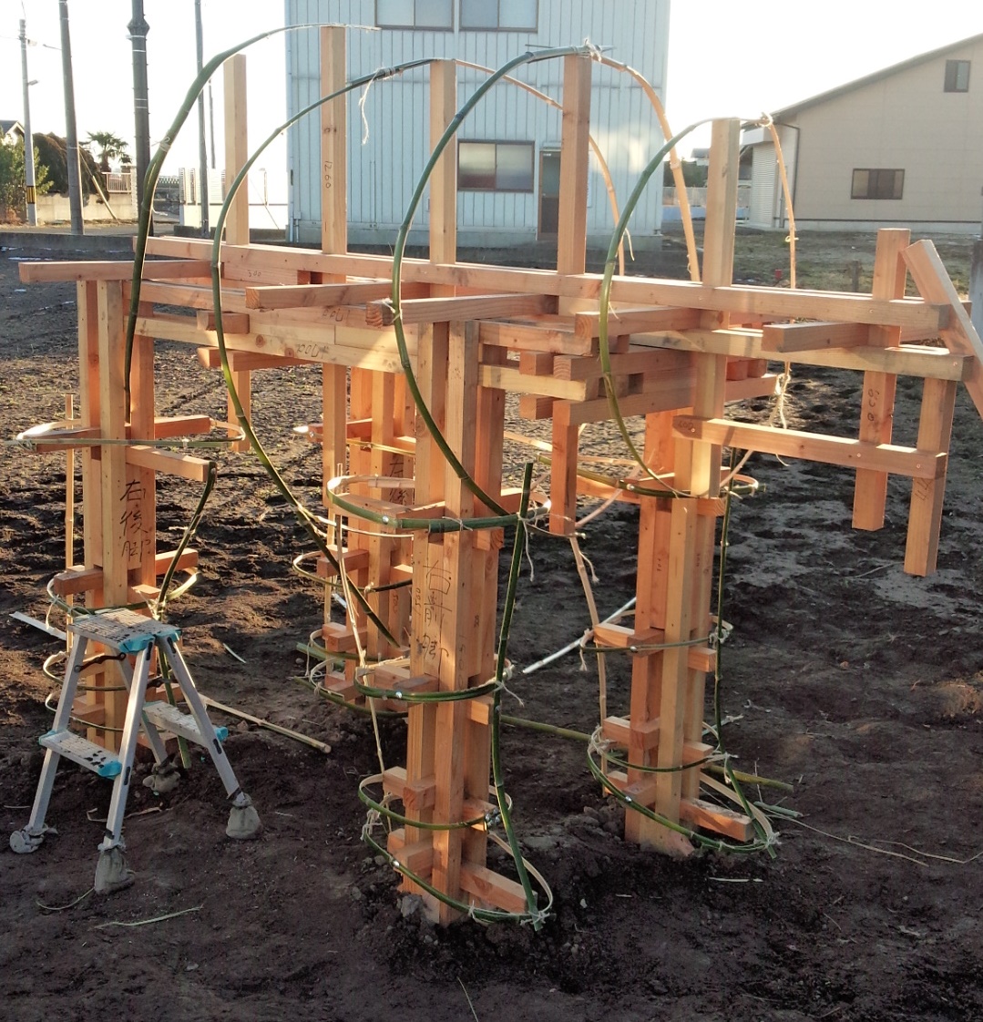 本体の木枠に、竹の肉付けが終わると