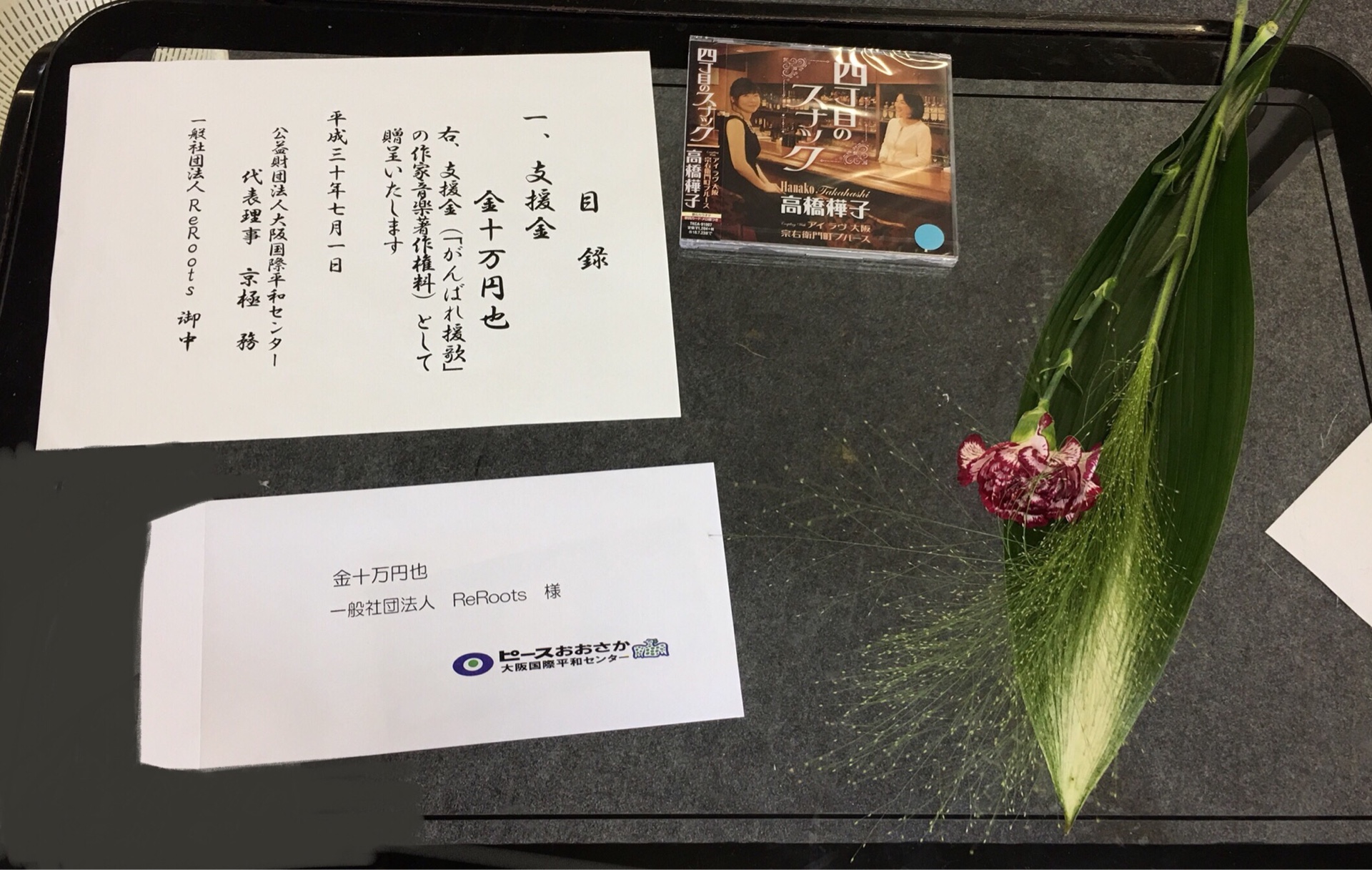 7月1日、高橋樺子さんのコンサートの後に行われた贈呈式で、「がんばれ援歌」による寄付金をいただきましたので遅くなりましたがご報告いたします。