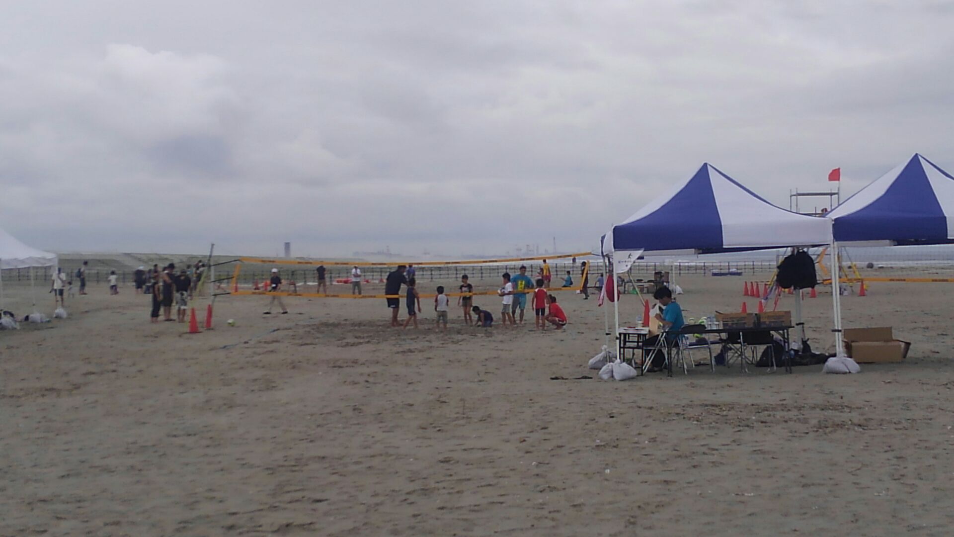 波が荒いため、遊泳禁止。残念。 ビーチバレー会場 こどもたちが張り切っています。