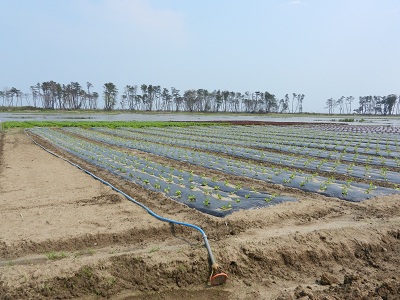 写真の奥にはすぐ防潮林が見えます。海にすごく近いところです。