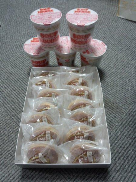 カップめんと、もっちもちな食感の餅いりどら焼きです!