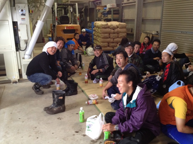 ↑依頼者の農家さんのおうちの納屋にて休憩中。