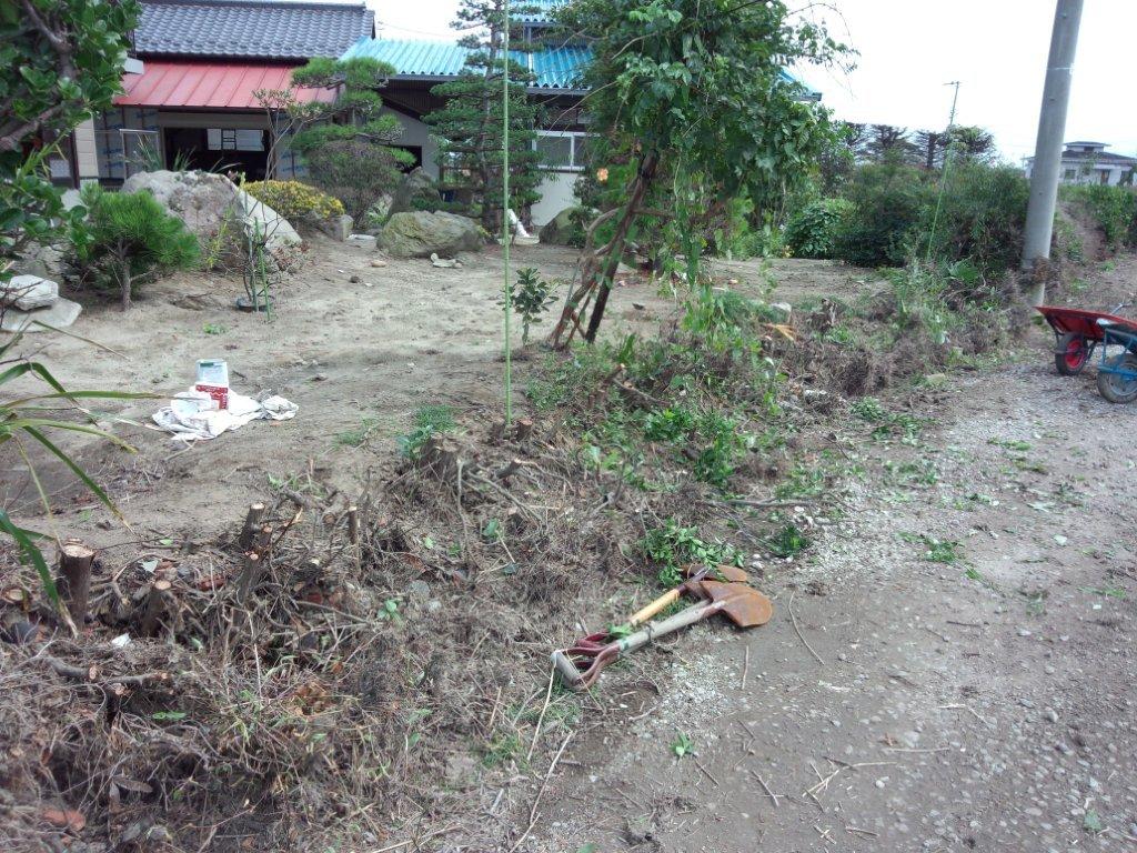 今日一日では、すべての垣根を切り倒すことはできず、また、たくさんの切り株を残して作業は終わりとなりました。