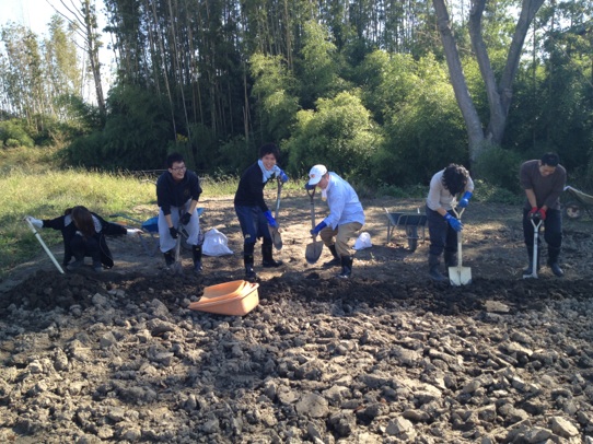 今日は二木という地区で土おこしとガレキ取りを行ってきました。