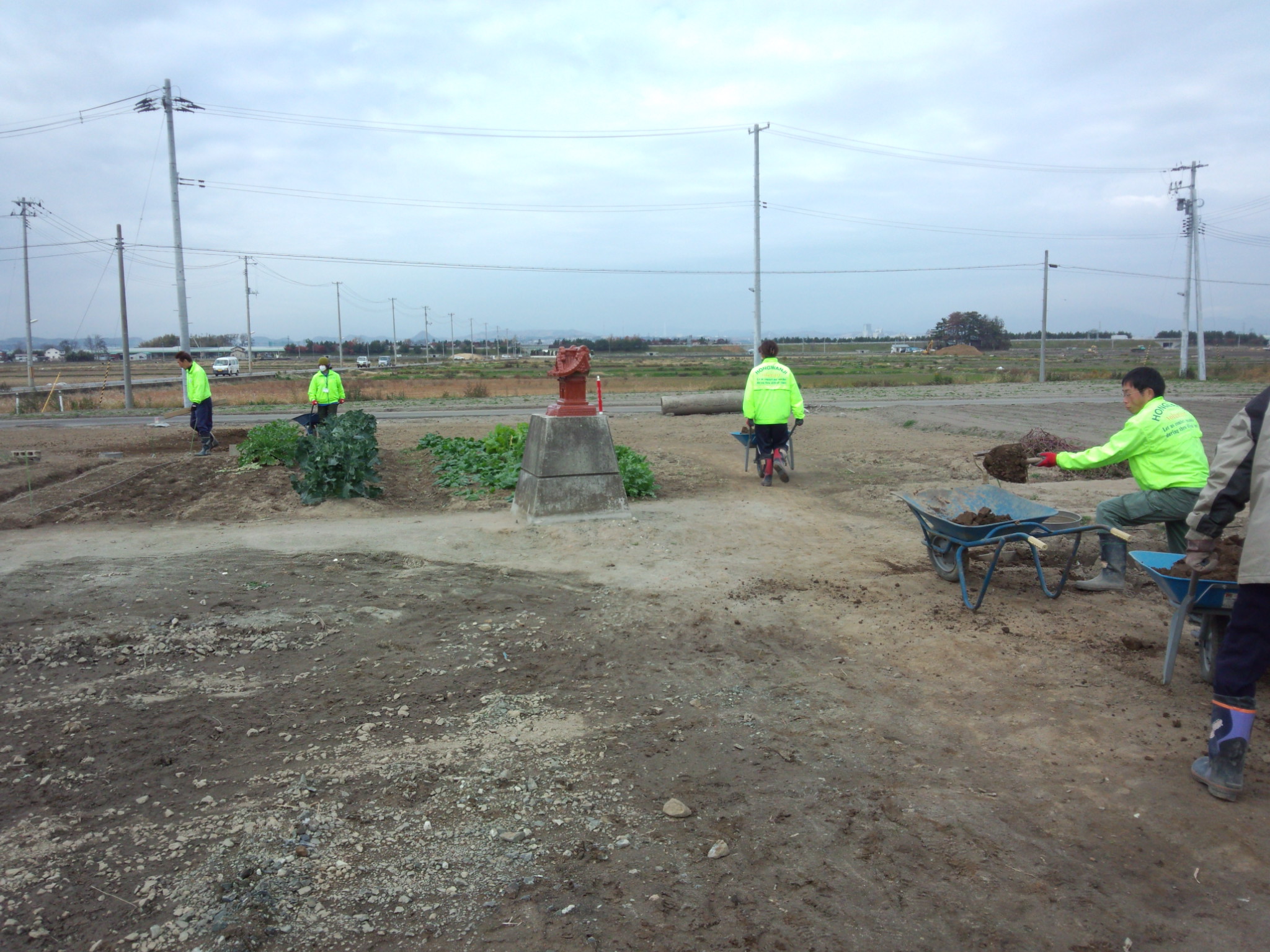 土盛りする前にみんなでガレキを掘りだした畑なので、