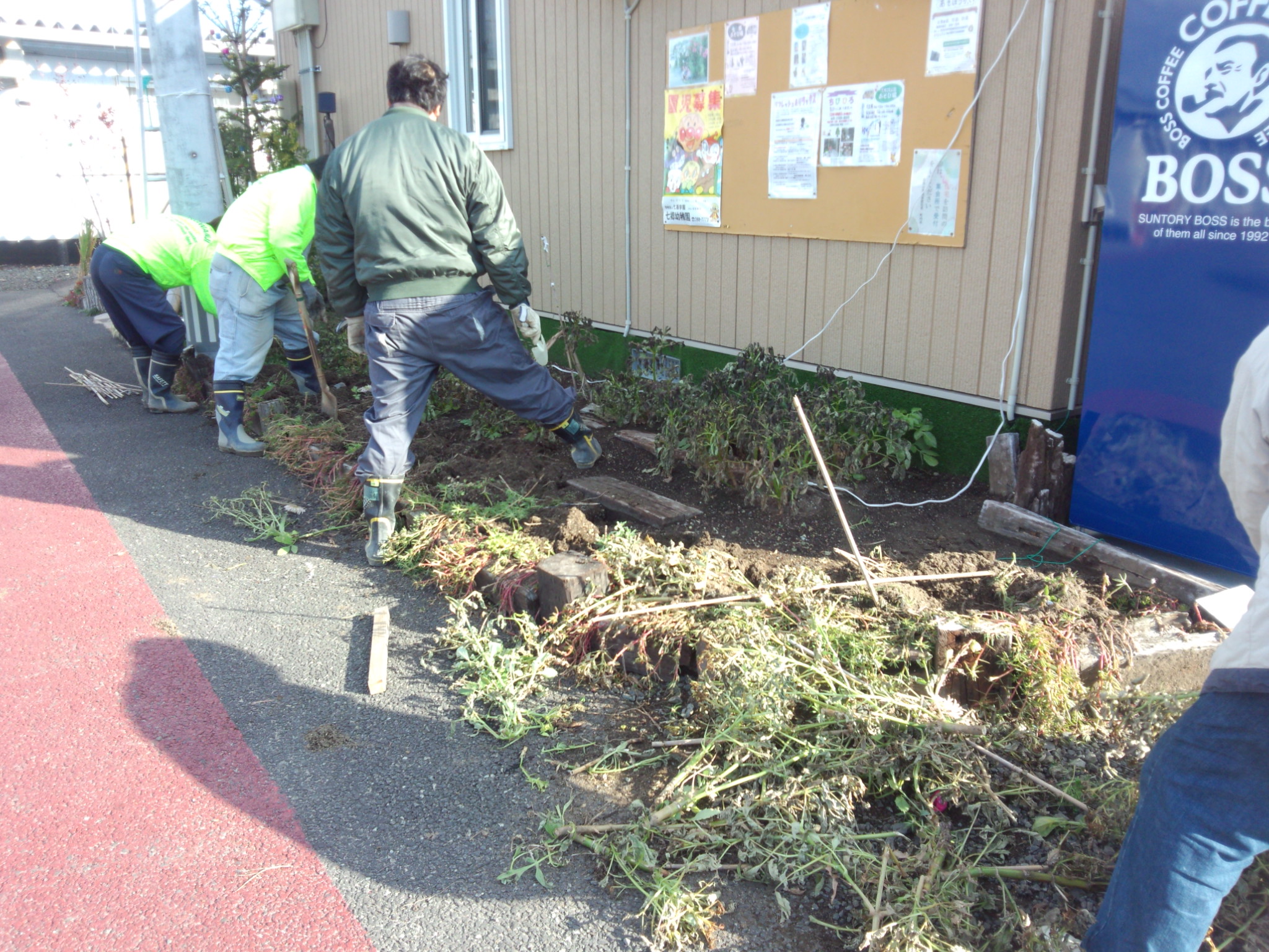 無事に育って出荷され、その後片付け作業です。