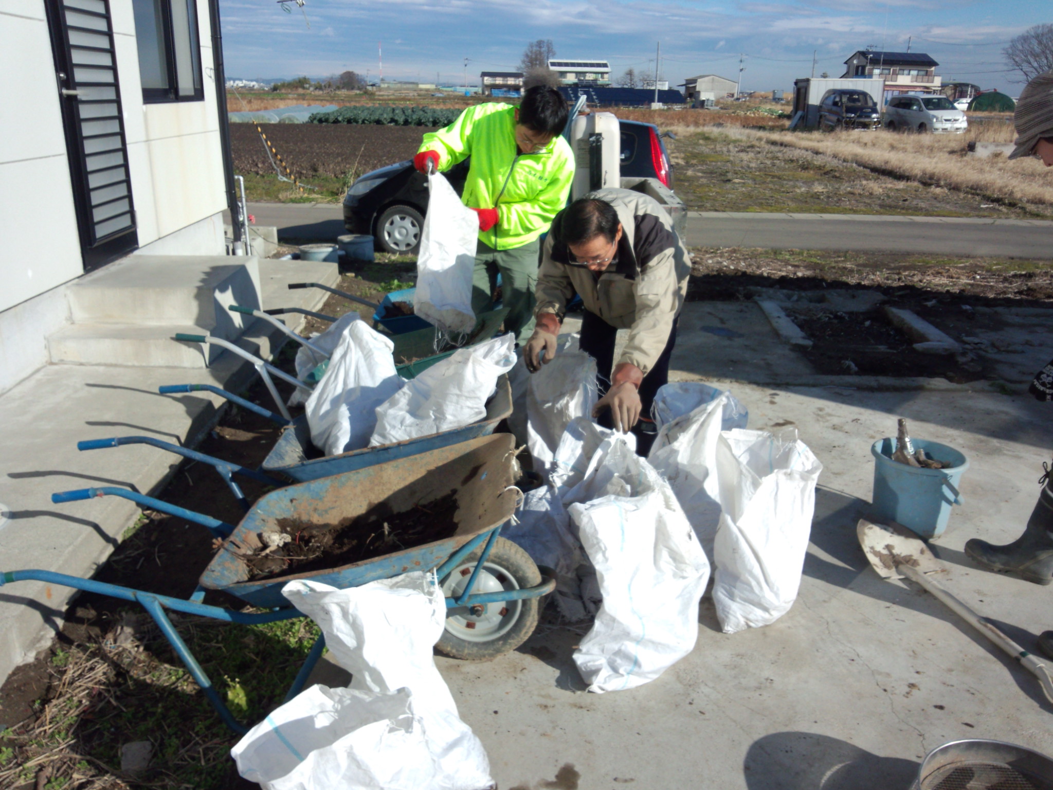 一輪車3台分なので、けっこう大変です。