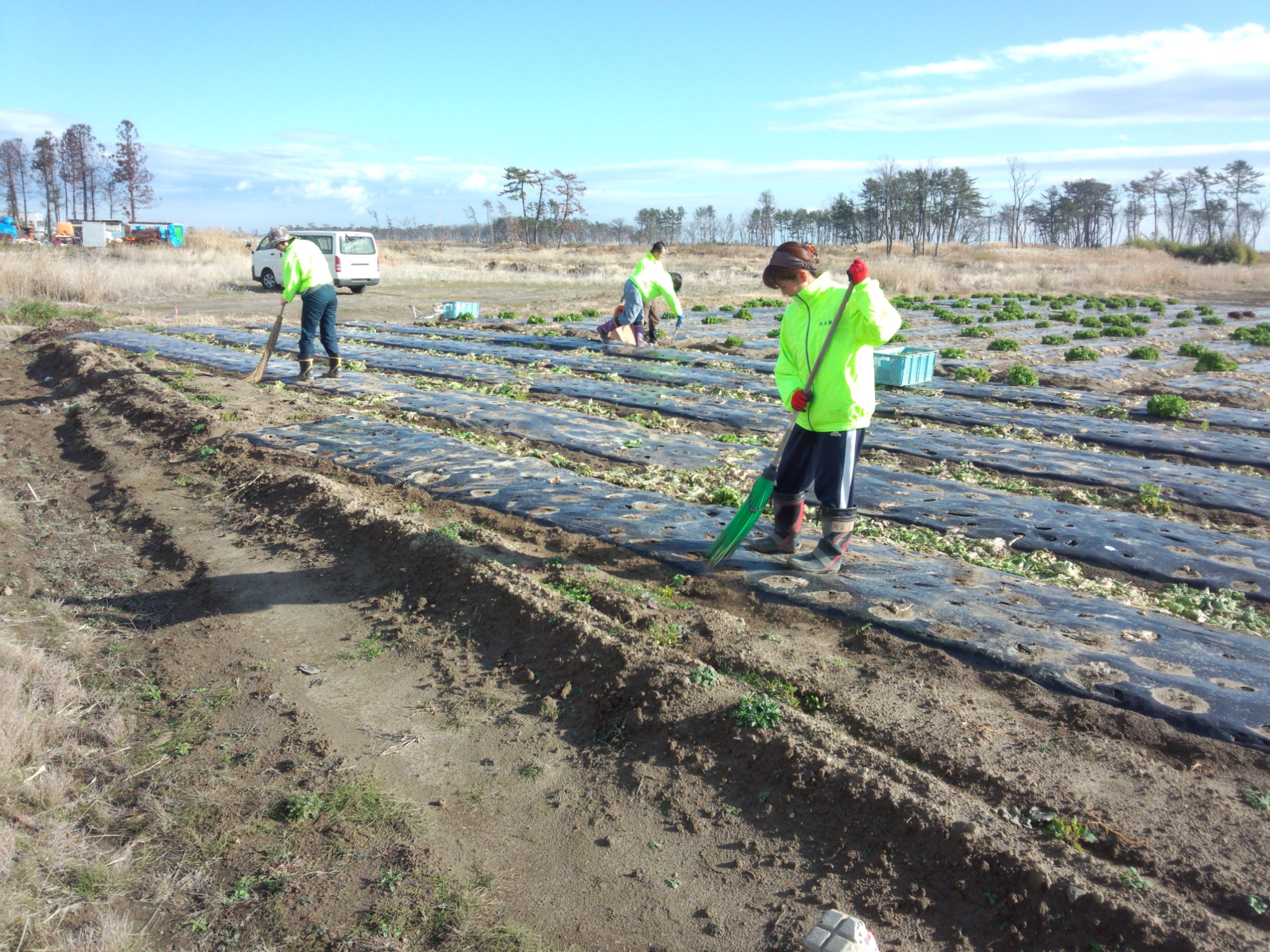 というように、みんなでガレキを取って無事レタスが育った畑です。