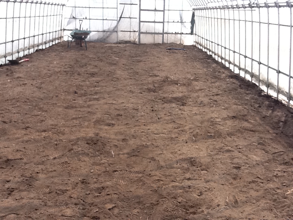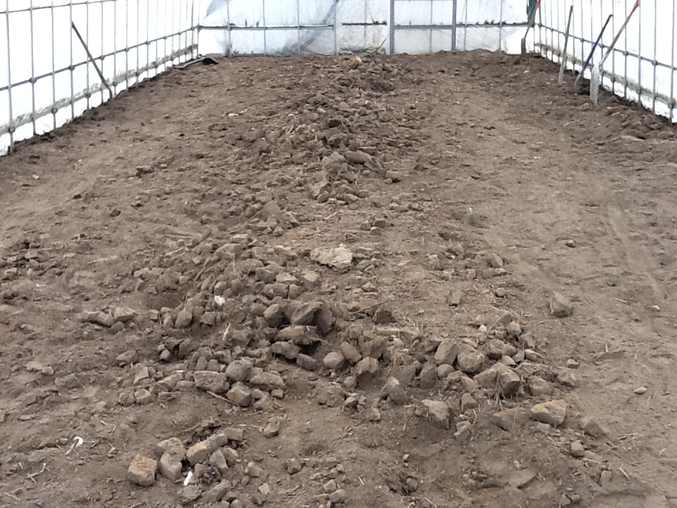 ハウス内には重機が入れませんのでこの作業は手作業で行う必要があります